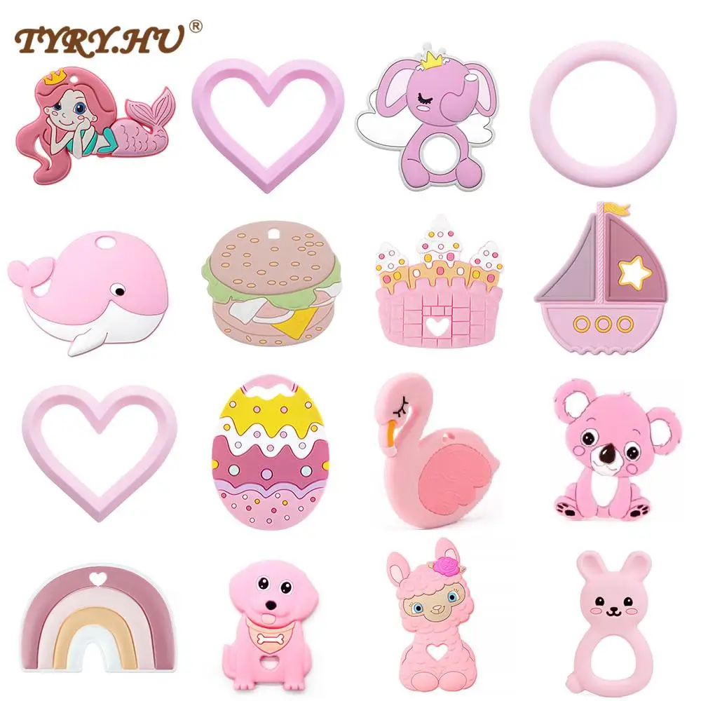 Силиконовые Прорезыватели TYRY.HU, 1 шт., без BPA, пищевого силикона, бисер, сделай сам, Прорезыватель для зубов, ожерелье, подарок для детского душа, прорезыватель с мультяшными животными