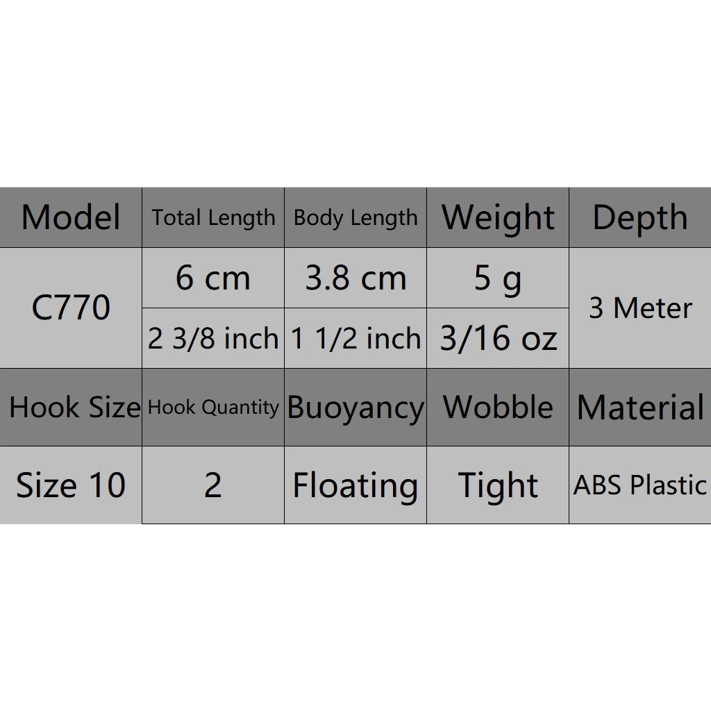 WLure 6 см 5g, жесткая рыболовная приманка для Глубоководной Рыбалки, жесткая приманка для пресной воды, Джеркбейт с 8 крючками, приманка для насекомых, кренкбейт C770