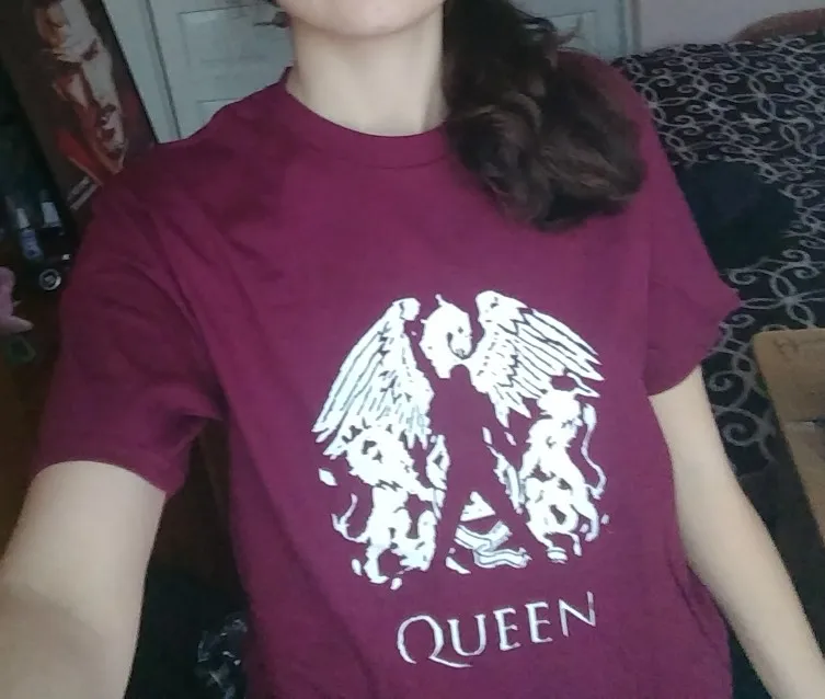 Футболка бренда Gildan из 100% хлопка хорошего качества. У меня раньше были футболки с этим брендом, они долговечные и не растягиваются после многократной стирки. Дизайн королевы был точным и принт тоже был хорошим. Доставка была быстрой-всего около 10 дней в пределах Азии. Хорошая покупка!