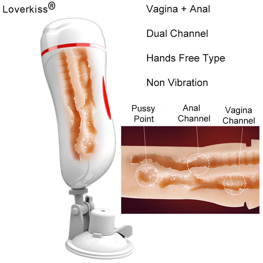 Двухканальная Вагина, анальная мастурбация, Вагина, настоящая киска, насос для пениса, Минет, вибратор, Мужской мастурбатор, секс-эротические игрушки для мужчин