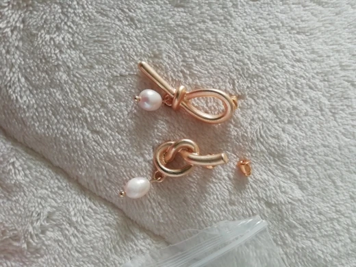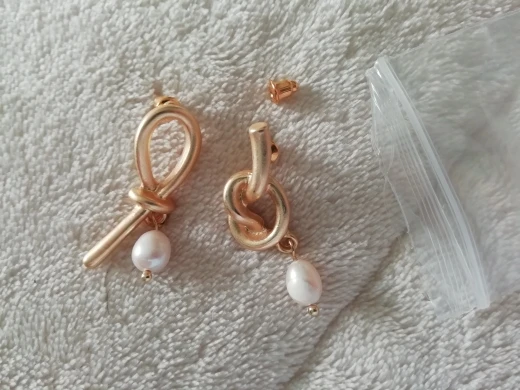 Доставка до Питера была быстрой, 2 недели. Серьги понравились, но оказались больше по размеру чем казалось. Металл не как на фото, он смотрится не так аккуратно и матовый. Серьги тяжеловаты, немного тянут ухо. Не знаю буду ли носить их.