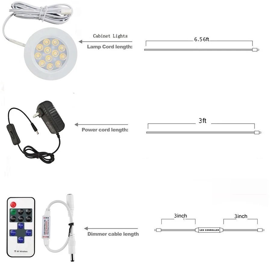 Светодиодная подсветка под шкаф с регулируемой яркостью 12 В, Ультратонкие светодиодные шайбы с пультом дистанционного управления RF, ручка контроллера для кухонного шкафа