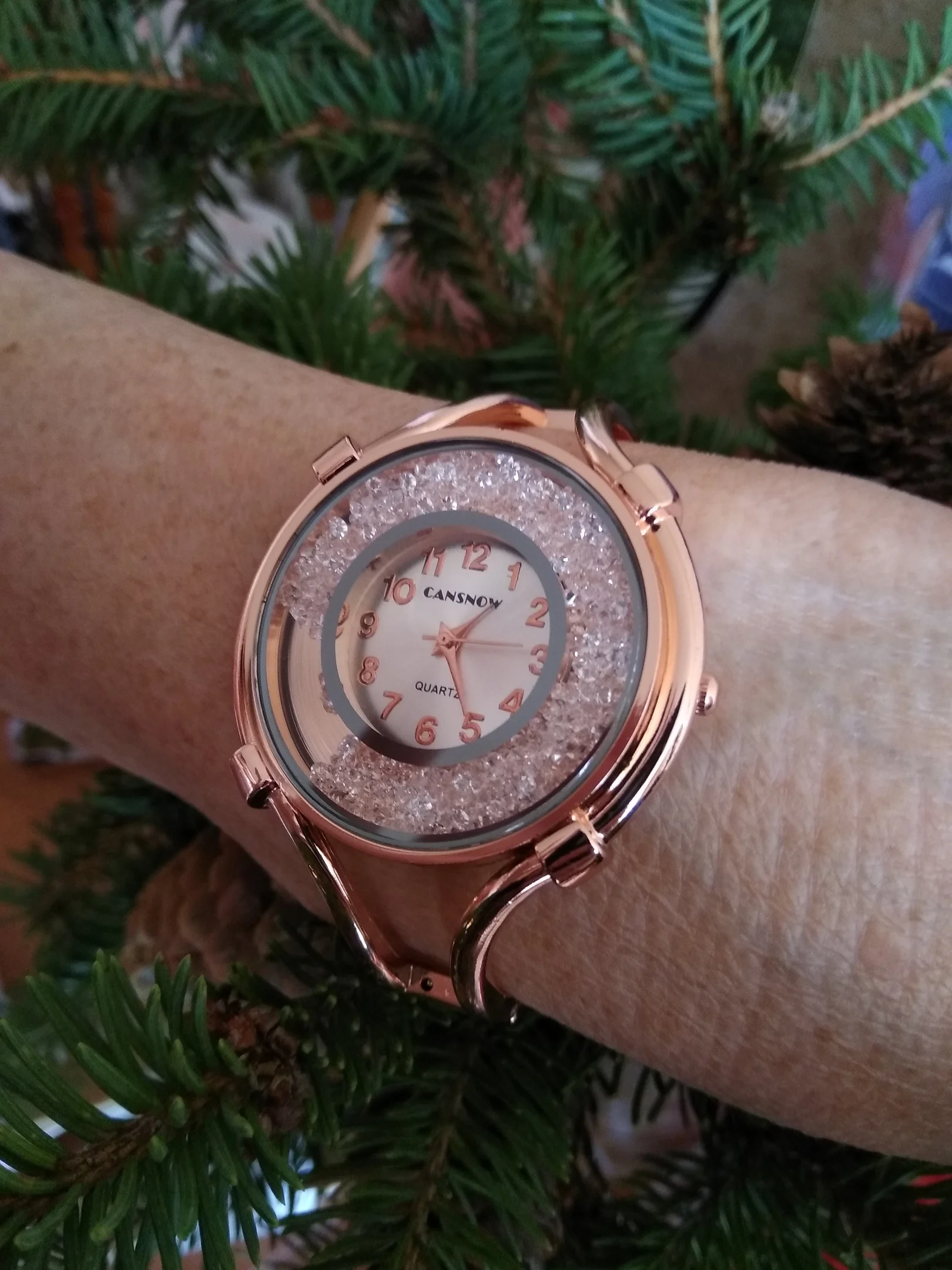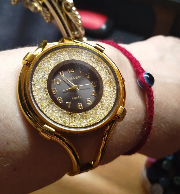 Часы очень красивые, очень эффектно смотрятся! Когда достала из упаковки, они уже показывали время. Идут беззвучно. Конечно, если внимательно присматриваться, можно заметить небольшие недочеты, но за эту цены они и так слишком хороши. Если вам нужен аксессуар, который вы будете носить с определенным нарядом время от времени, то это ваш вариант. Заказывала их для мамы, ей очень понравились! На довольно тонкую руку.