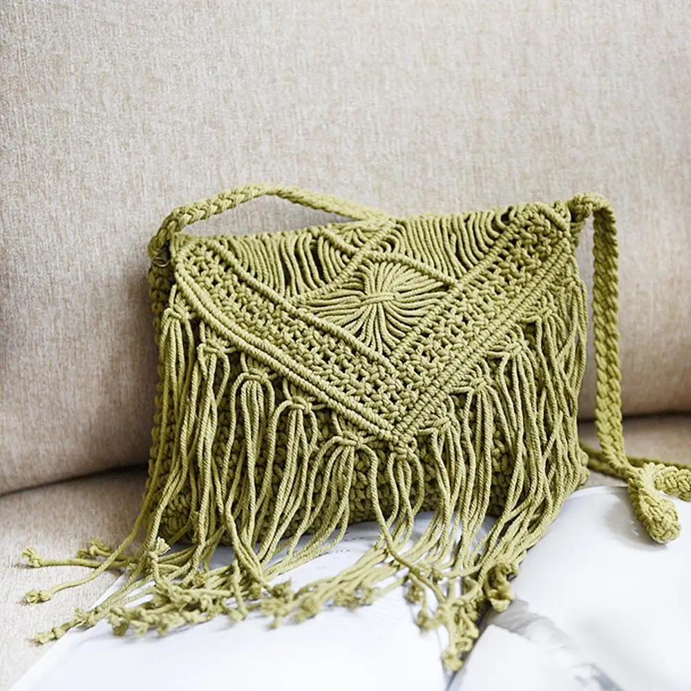 Плетеная круглая сумка ручной работы из ротанга, винтажная соломенная веревка с кисточками, Женская пляжная сумка-мессенджер