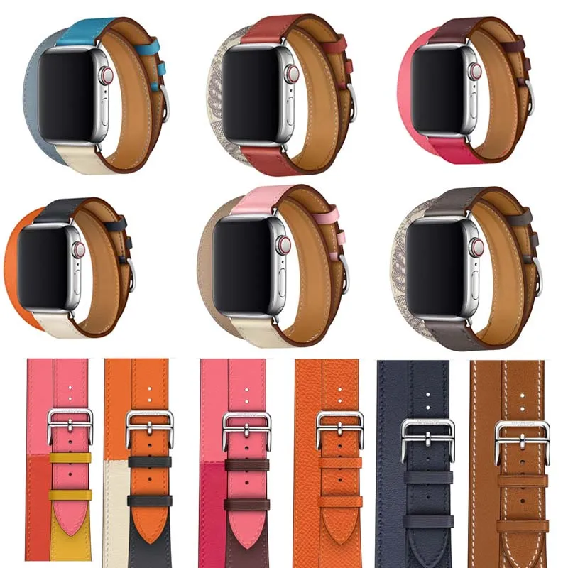 Новый кожаный ремешок для apple watch se Double Tour band 44 мм 40 ...