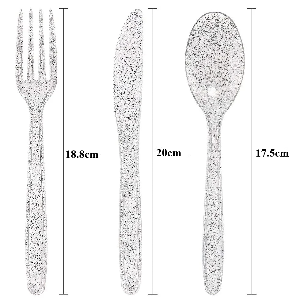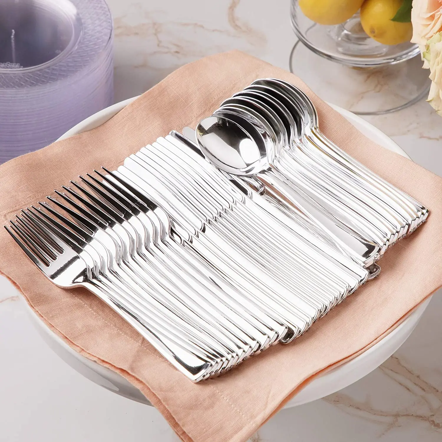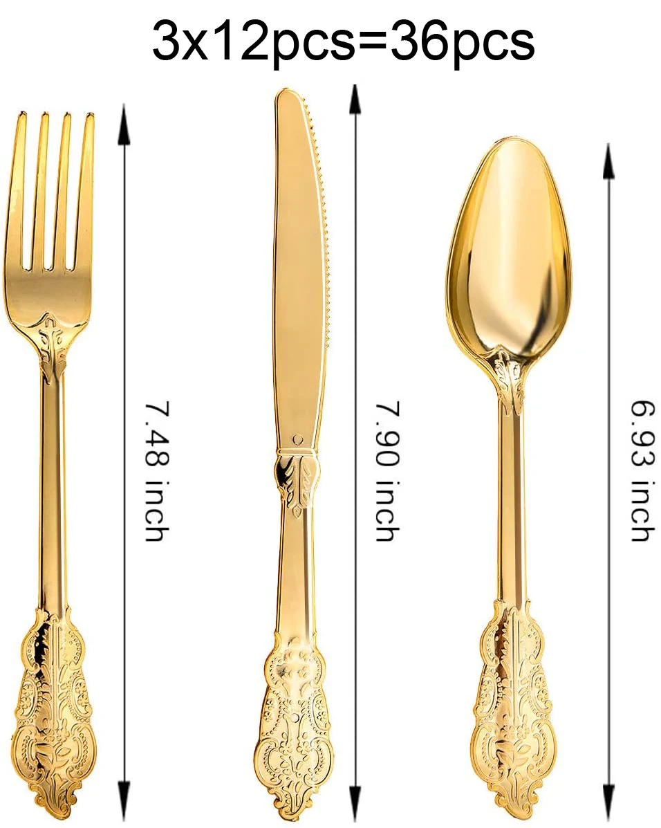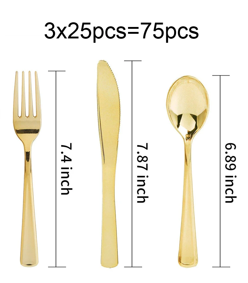 Пластмассовые столовые приборы золотого цвета, 75 шт., набор из одноразовая посуда серебра, тяжелые пластиковые столовые приборы, 25 вилок, 25 ложек, 25 ножей