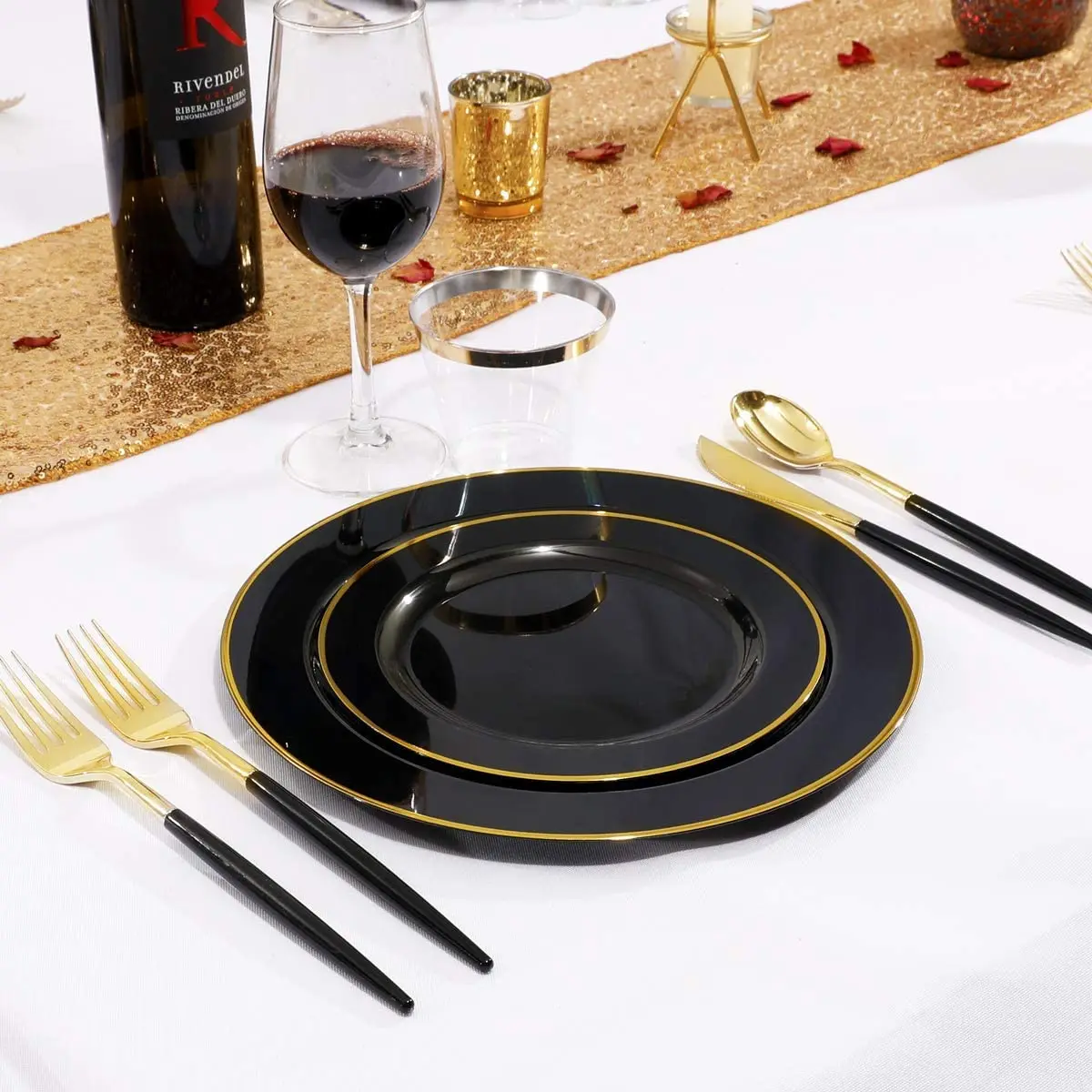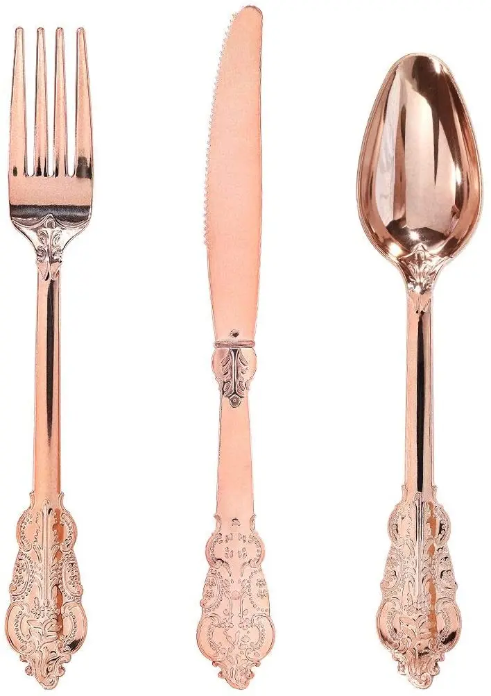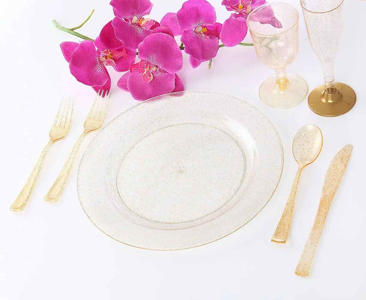 Пластмассовые столовые приборы золотого цвета, 75 шт., набор из одноразовая посуда серебра, тяжелые пластиковые столовые приборы, 25 вилок, 25 ложек, 25 ножей