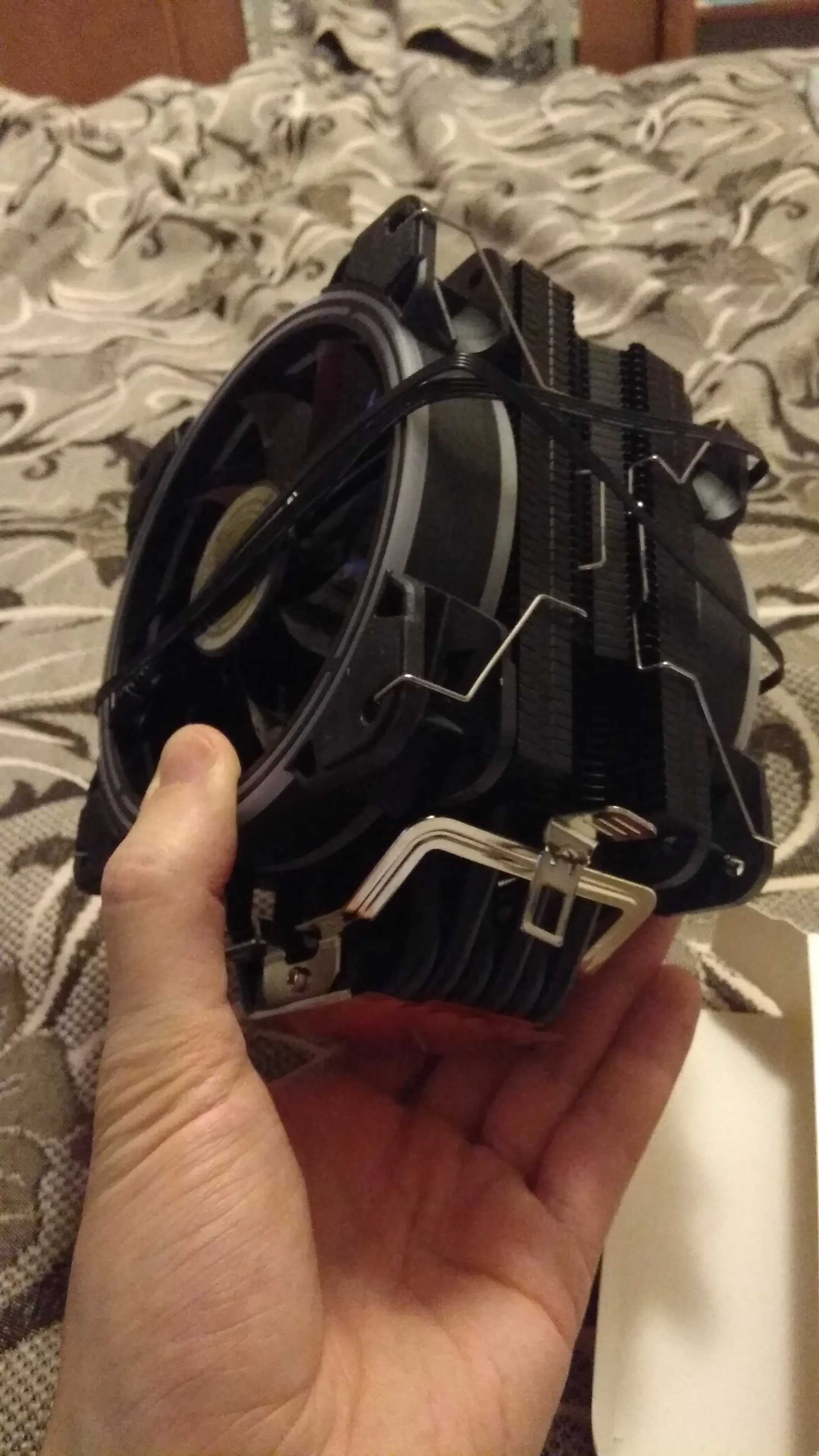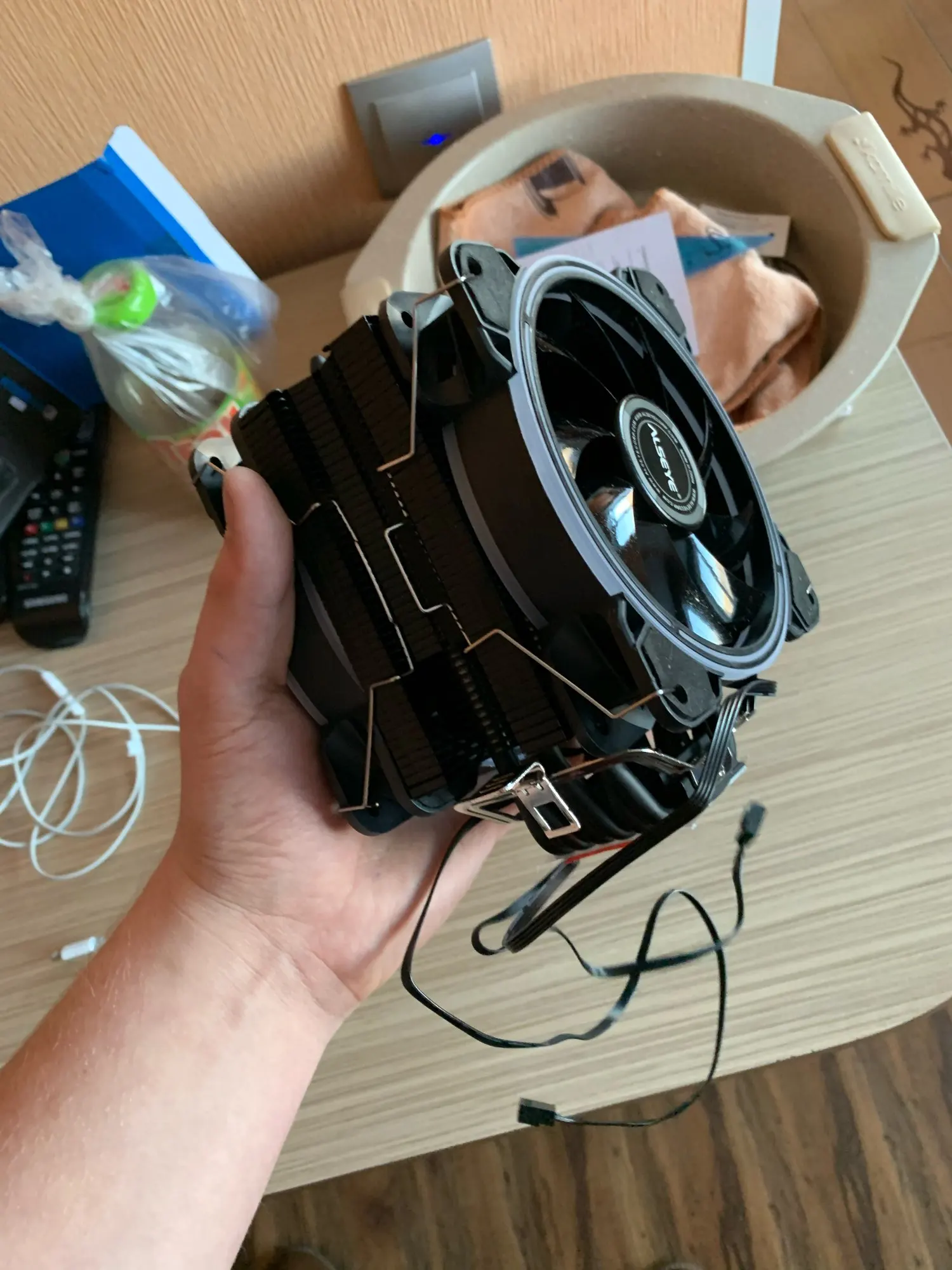 Куйлер красивый и практичный. Благадаря 6 трубка охлаждения процесса AMD ryzen 5160 в требовательных играх при максимальных настройках и взрывах в игре греется не больше 45c. Пришёл быстро за 1,5 недель в Мурманск. В комплекте был разветвитель так что 2 куйлер поместили б в один разъём питания. Но есть и минусы но маленькие. 1. Габаритные размер поместится не во все корпуса. 2. Не подходят родные крепления материнской платы пришлось в крутить встроенные а они синие но если не всматриватся то не страшно В целом покупкой доволен и за такие деньги всем саветую к приобретению