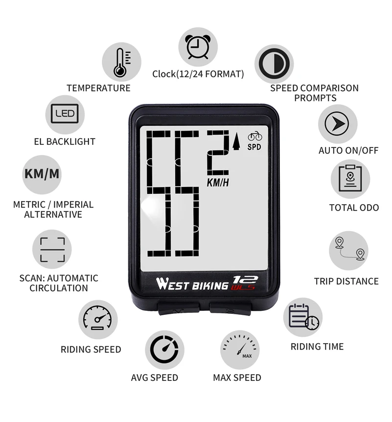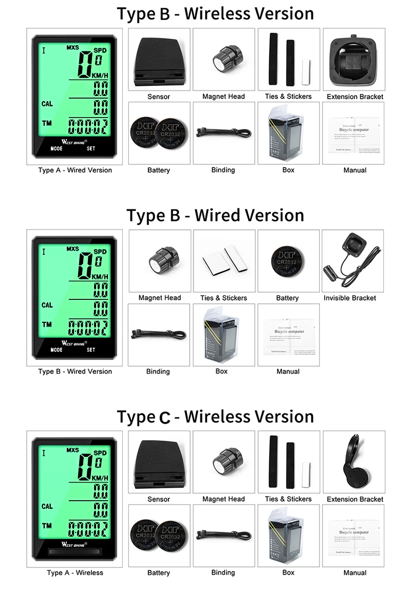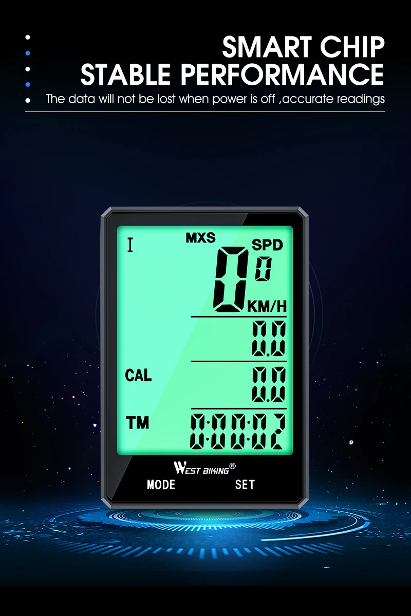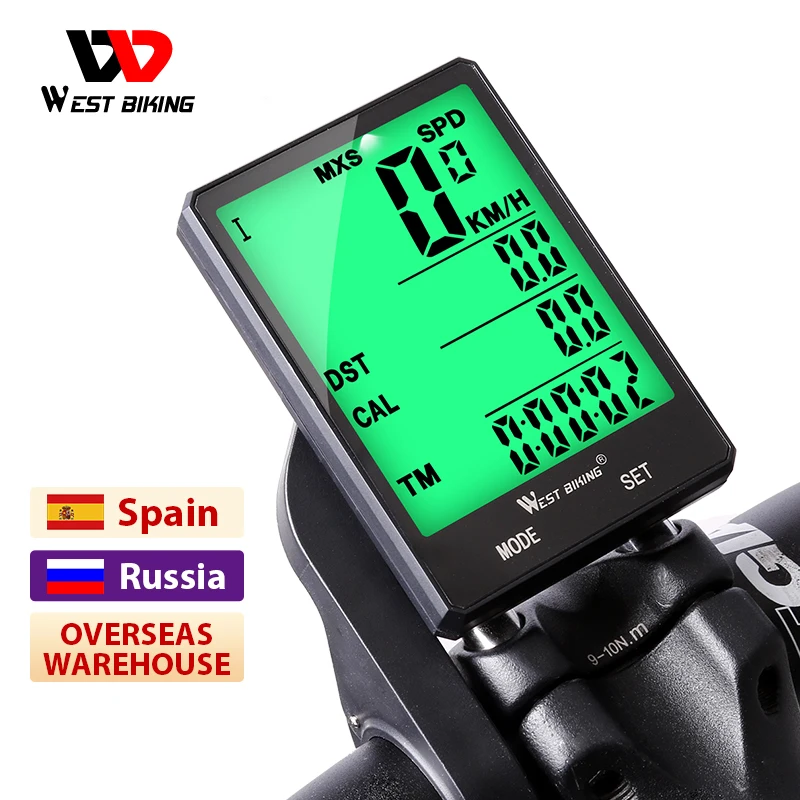 WEST BIKING водонепроницаемый велосипедный компьютер с подсветкой беспроводной проводной велосипедный компьютер велосипедный спидометр, одометр велосипедный секундомер