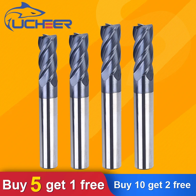 UCHEER Цена со скидкой резка HRC45 4 канавки 4 мм 5 мм 6 мм 8 мм 12 мм фрезеровка из сплава карбида Вольфрамовая сталь фреза Концевая фреза