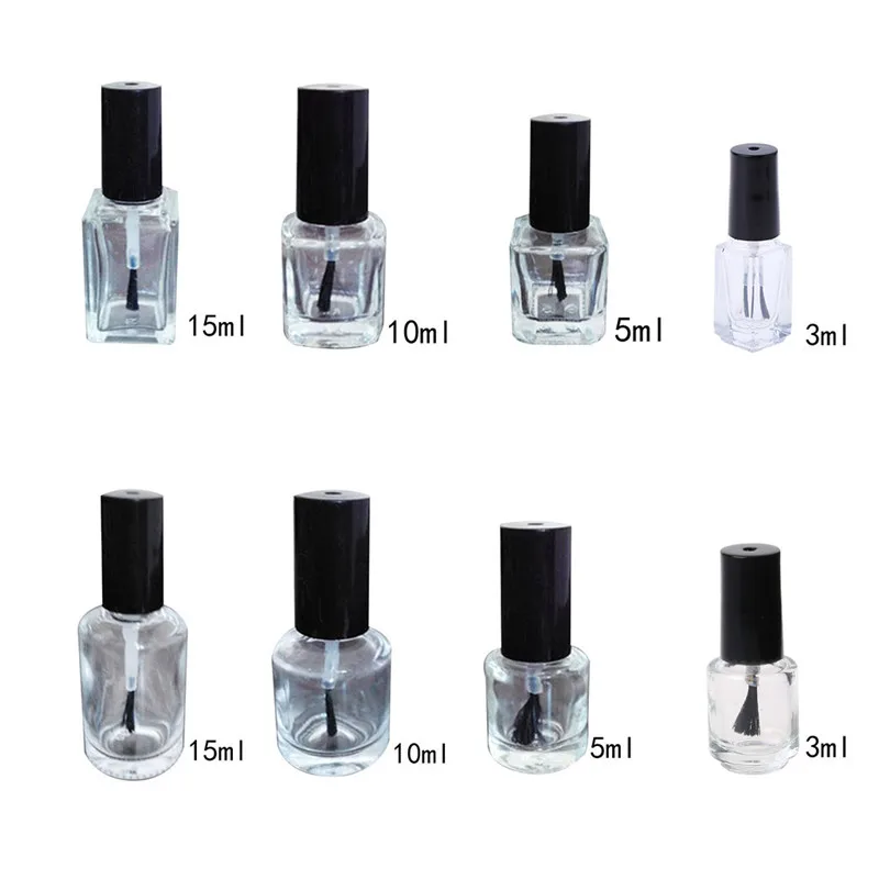 4 емкость для того, чтобы выбрать: 3/5/10/15 мл. Квадратная/круглая форма на выбор. Прозрачная стеклянная бутылка с кисточкой и крышкой.