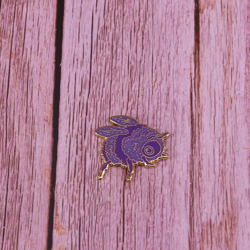 Фиолетовая пчела, жесткая эмалированная булавка, фэнтези брошь с блестками, милая пчела, значок, детский подарок, пальто, аксессуар для рюкзака
