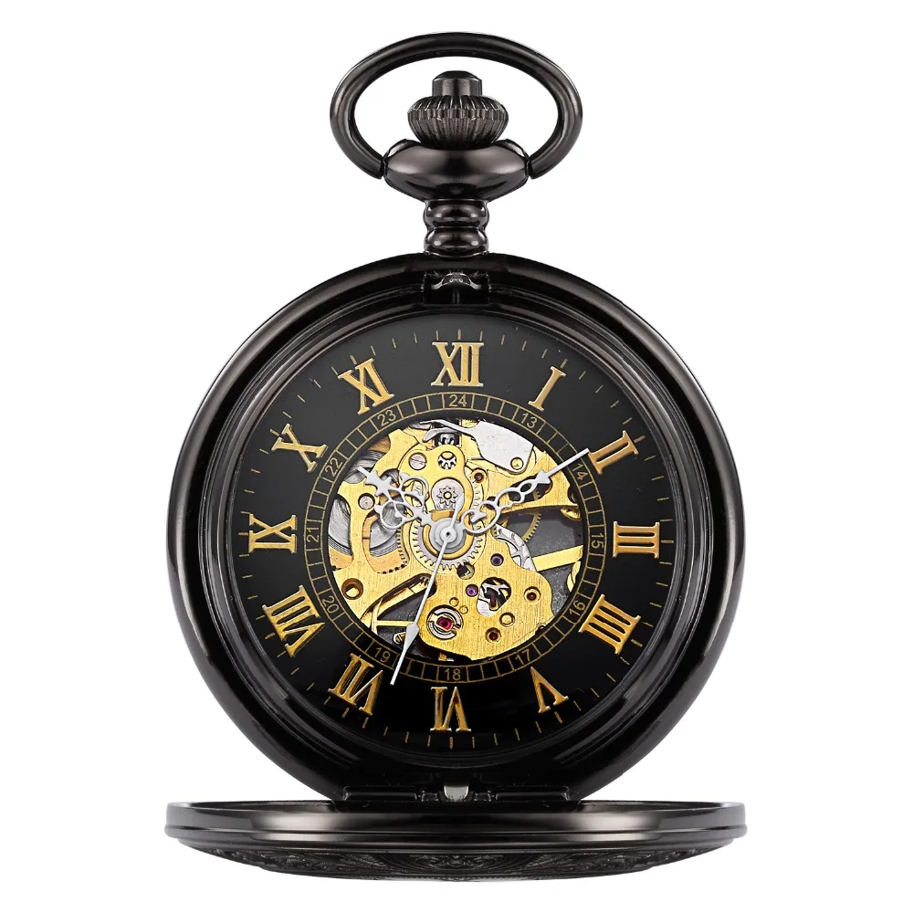 Мужские карманные часы W029B, черный циферблат под старину с золоты...