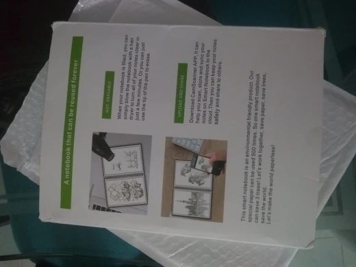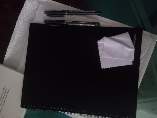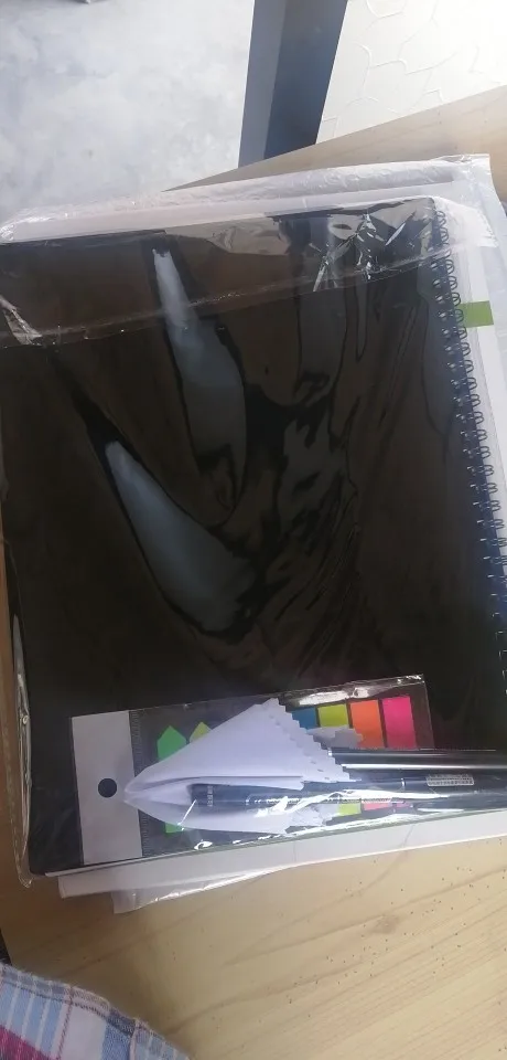 Хороший продукт, доставили еще несколько дней Ноутбук хорошо работает, включает в себя две ручки и отправку-он довольно полезен вместе с тканью или тканью для очистки листьев S-sheets-это своеобразный материал, но довольно удобный, я рекомендую не отмечать и не наносить слишком много карандаша или ручки, так как это оставляющее отметку на листе