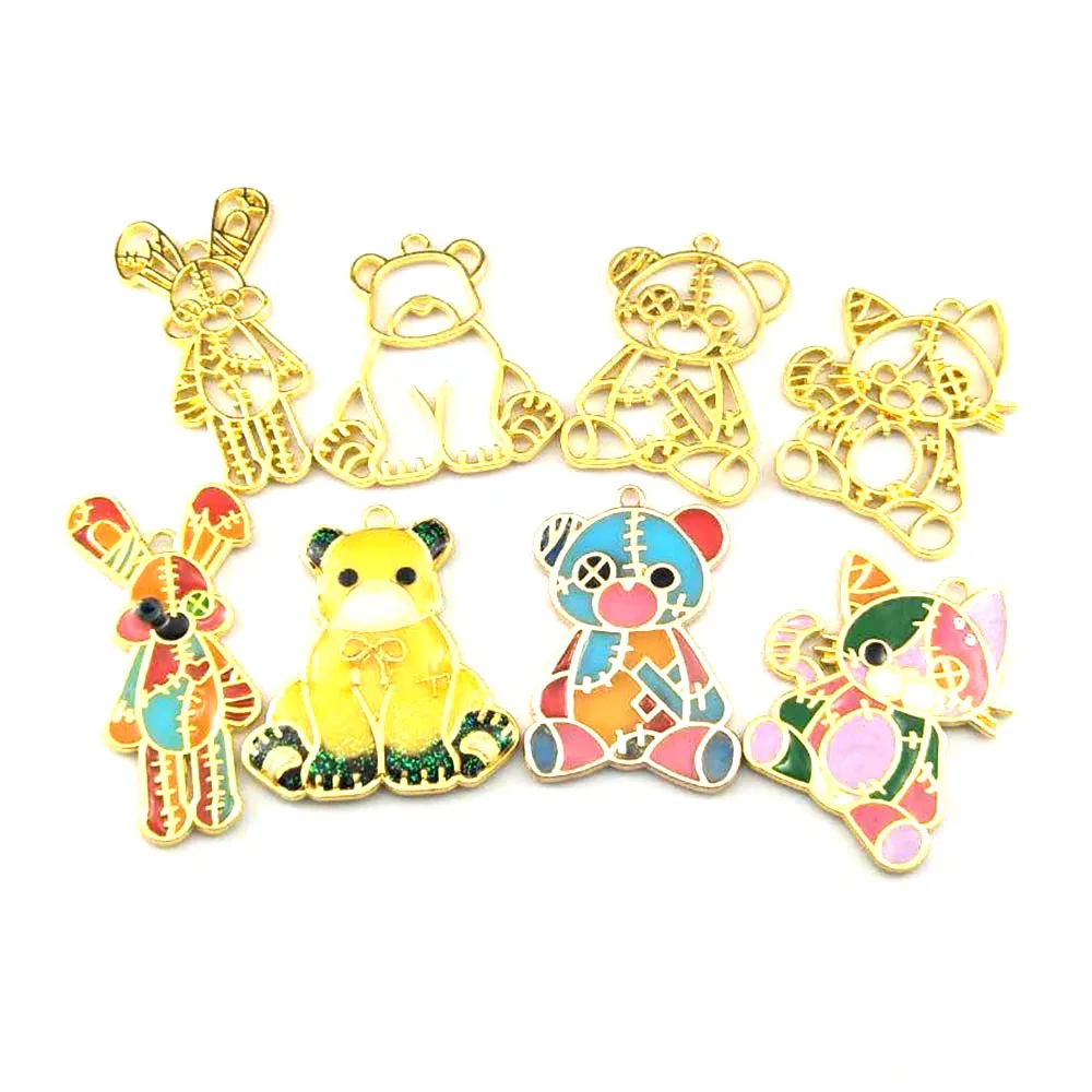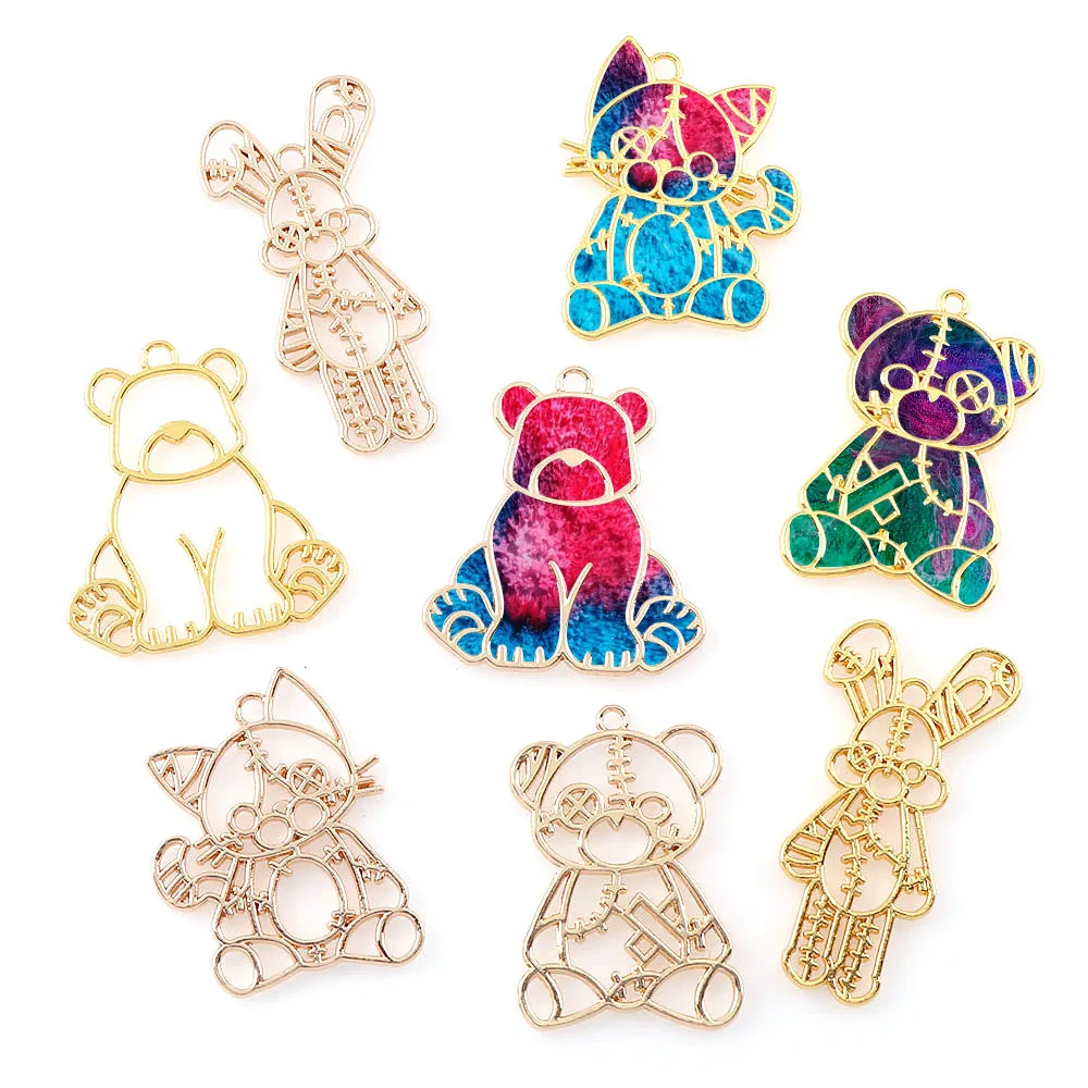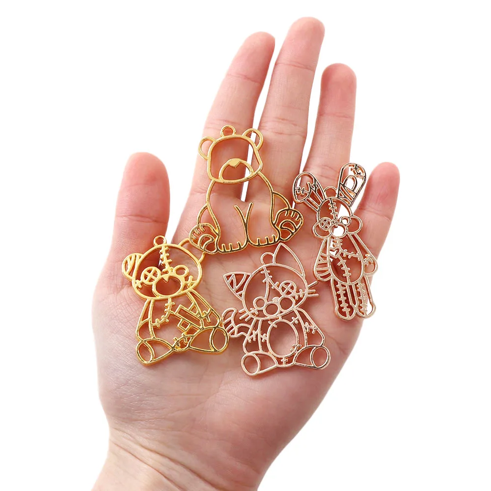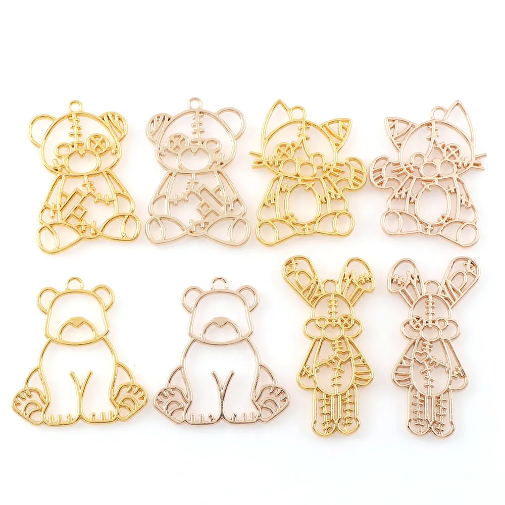 2 шт.компл. милые Подвески из розового золота медведь кролик лиса металлические полые животные рамка Подвеска Золотая Очаровательная оправа для самостоятельной сборки УФ смолы подвески