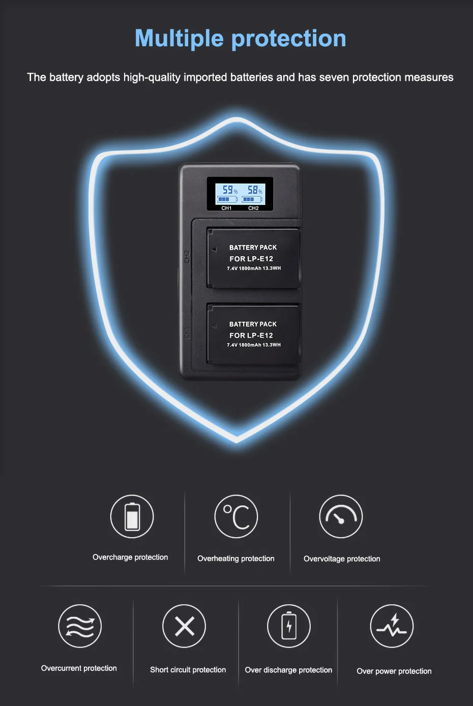 100% Оригинальный LP-E12 LP E12 LPE12 литий-ионный аккумулятор и зарядное устройство с ЖК-дисплеем и двойным USB для Canon EOS M50, EOS M100,100D Kiss X7 Rebel SL1