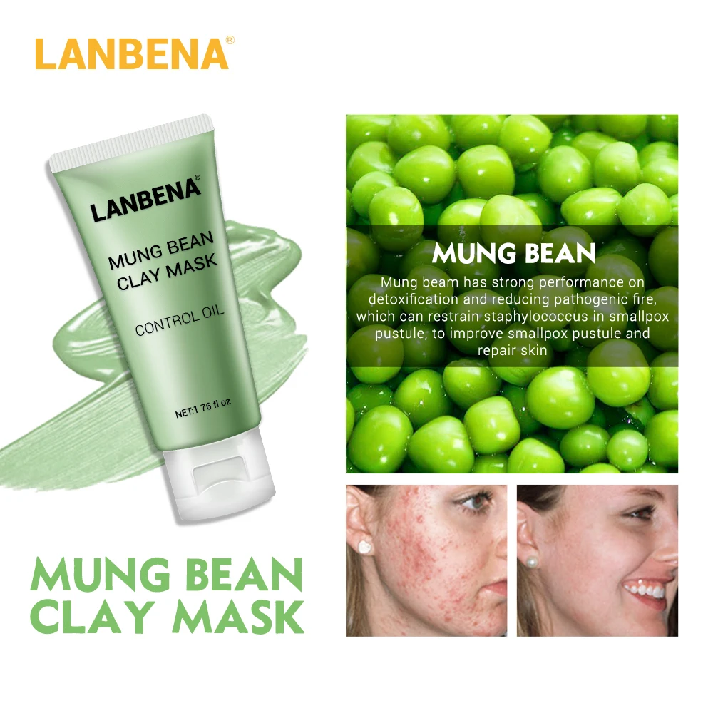 Эффективность: богатая натуральным экстрактом бобов мунг в сочетании с разнообразными растительными экстрактами, глиняная маска LANBENA mung бобов хорошо влияет на уход за акне и другие вопросы играют регулирующую роль, также может уменьшить следы от акне и питать кожу. Светильник и тонкая минеральная глина с функцией глубокой очистки и контроля масла может эффективно очистить поры, удалить жир и контролировать масло.