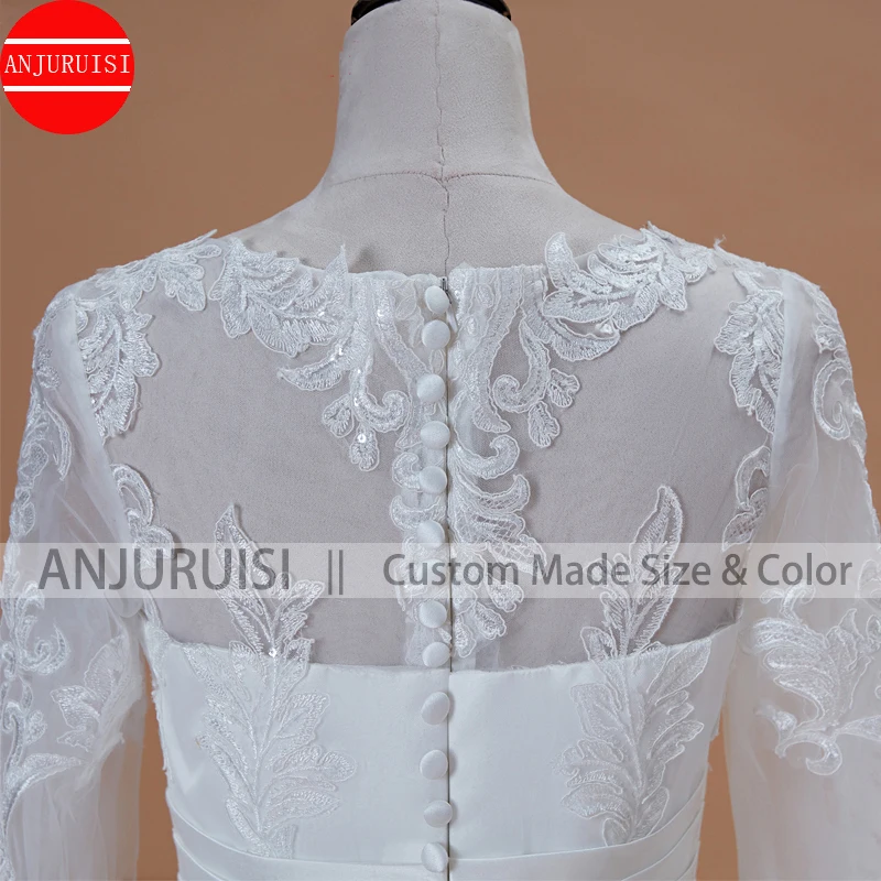 Платье свадебное с длинными рукавами, трапециевидный силуэт с овальным вырезом, с карманами, 2020