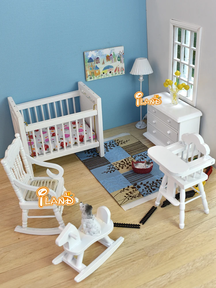 Миниатюрный Кукольный домик ILAND 112, детская комната, кровать, детская мебель, комплект для спальни, кроватка, шкаф, кресло-качалка Hobbyhorse для кукольного дома