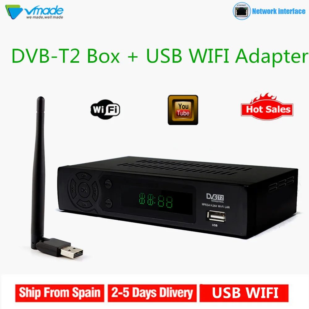 Vmade DVB-T2 + USB WIFI Full HD 1080P MPEG4 ЦИФРОВОЙ наземный ТВ-приемник DVB-T ТВ-тюнер Встроенная Сеть Поддержка Youtube PVR