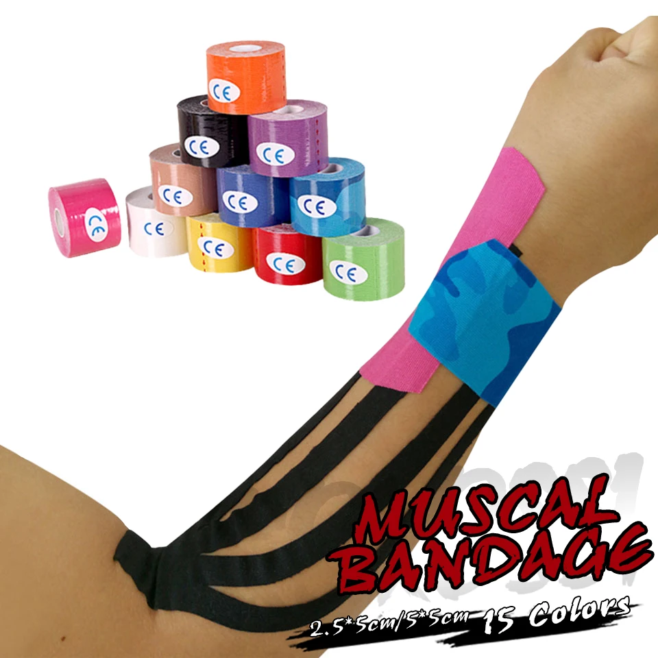 1 рулон эластичной хлопковой клейкой повязки 2,5 см * 5 см, спортивный бандаж Muscal наклейка на повязку, уход, Кинезиология