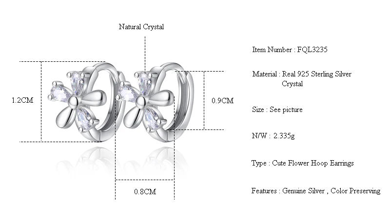 Женские серьги-кольца с кристаллами Fanqieliu, милые ювелирные украшения из серебра 925 пробы, подарок для девушки, FQL3235