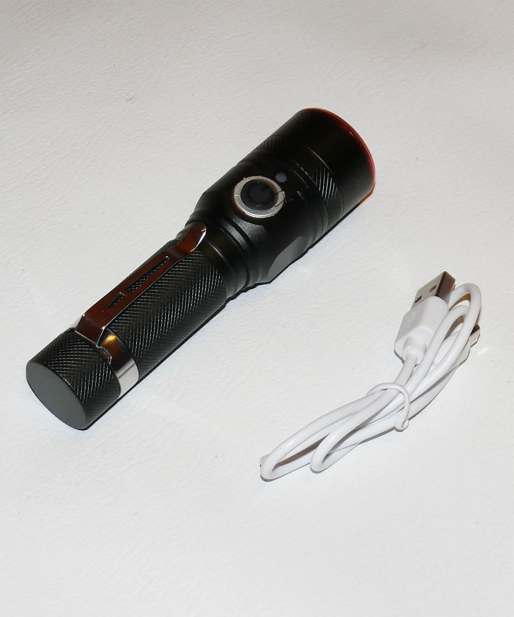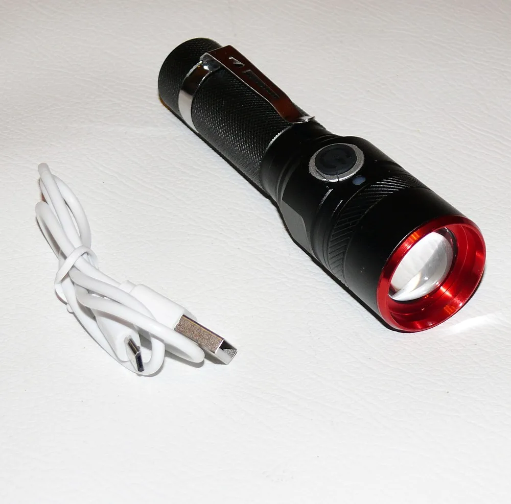 Мощный, маленький, заряжаемый фонарик. Светит отлично, сделан очень качественно. Благодаря линзы можно менять дальность и обзор света. В комплекте usb шнур для зарядки. Продавец отправил быстро. Из минусов долгая доставка, но это почта виновата.