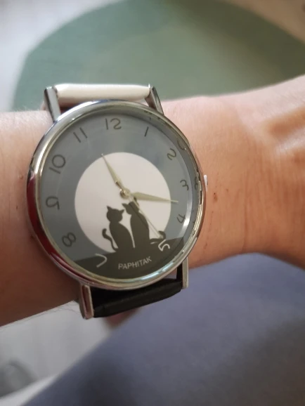 Часы женские кварцевые с кожаным ремешком, с принтом кошки