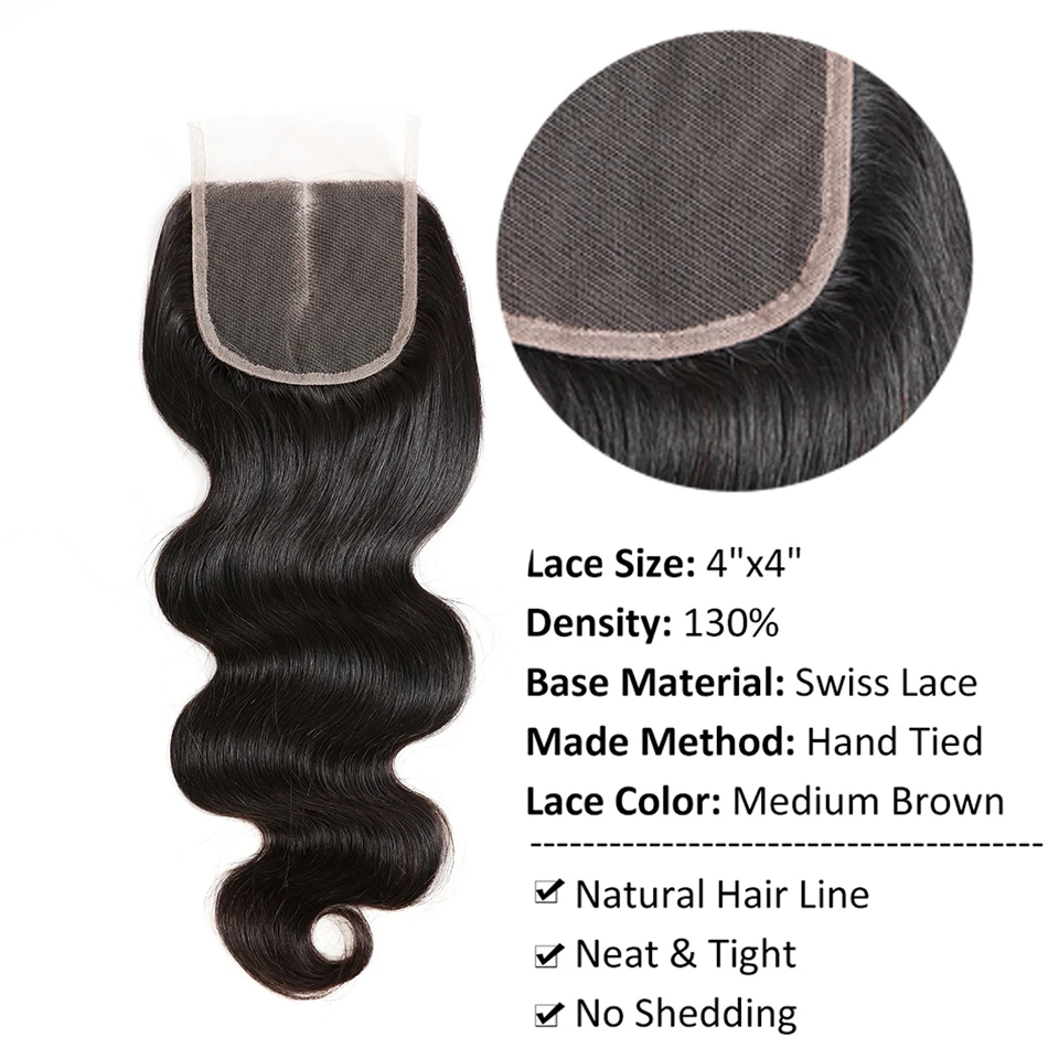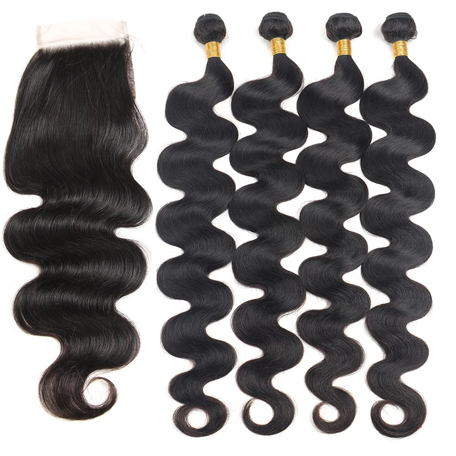30 дюймов Пряди с закрытием волнистые 3/4 пряди с закрытием Remy бразильские человеческие волосы с закрытием можно сделать в парики