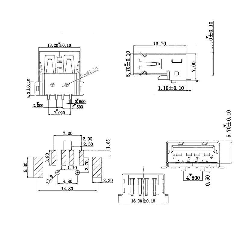 Розетка SMT Warp Edge USB 2.0 тип A 4 контакта 2 фута 90 градусов обжимной штекер для зарядки гнездо разъем коннектор Проводной адаптер сделай сам