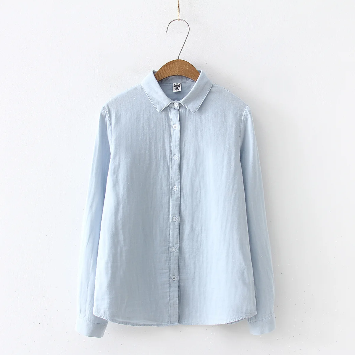 Женская блузка из хлопка FEKEHA, повседневная Однотонная рубашка с длинным рукавом, для офиса