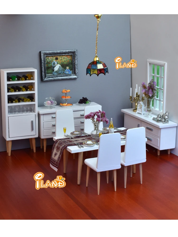 Мебель для кукольного дома iLAND, современный обеденный стол со стульями, шкафами, кукольный дом, столовая, миниатюрные игрушки для девочек, мальчиков и детей