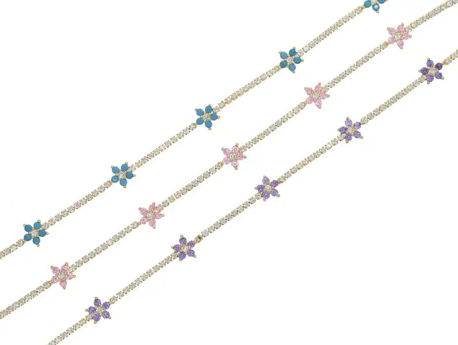 2022 романтическая тонкая цепь с фианитом для тенниса, пастельные красочные шармы с цветком маргаритки для женщин и девушек, Элегантный изящный браслет, ожерелье, Ювелирный Комплект