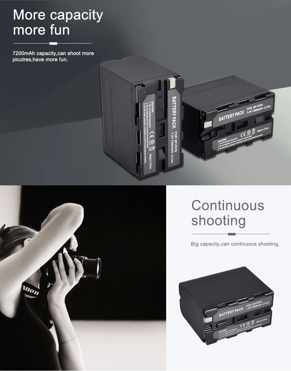 Аккумулятор PALO 7200 мАч с индикатором заряда NP F970 NP-F960 + сверхбыстрое зарядное устройство с ЖК-дисплеем для Sony NP F970 F960 F550 F570 QM91D