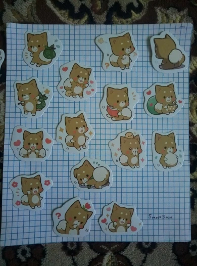 Заказала 11.08,получила 01.09 в Москве в отделении Почты России в составе объединённой посылки.Упаковка-пузырчатый пакетик.Коробочка слегка замялась на углах при транспортировки,она бумажная,это было ожидаемо.Наклейки полностью соответствуют описанию.Цвета акварельные,спокойные.Бумажные,фон белый.Картинки напечатаны качественно.Пёсик милашка,похож на котика и на лисичку(но это просто пёсик такой).Каждая картинка в трёх экземплярах.Трек посылки отслеживался на всём пути.Товар и продавца рекомендую.