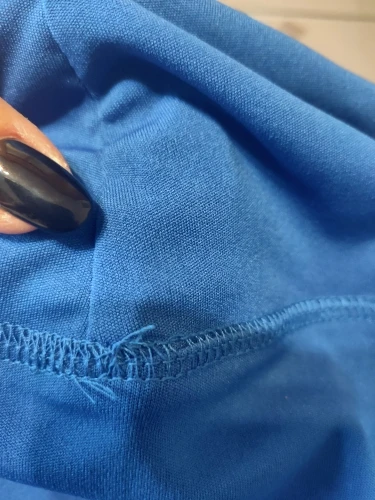 Ткань плохо тянется, размер сильно маломерит, не L точно, короткие, ткань светлее, чем на фото, доставка 3 недели, плохая строчка с торчащими нитками, зря купила