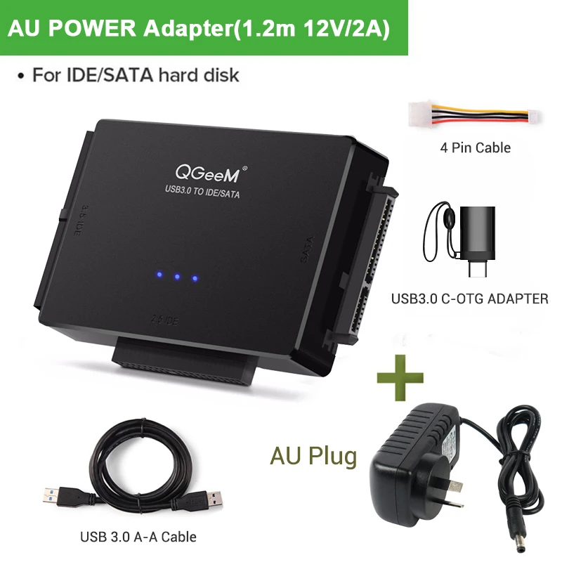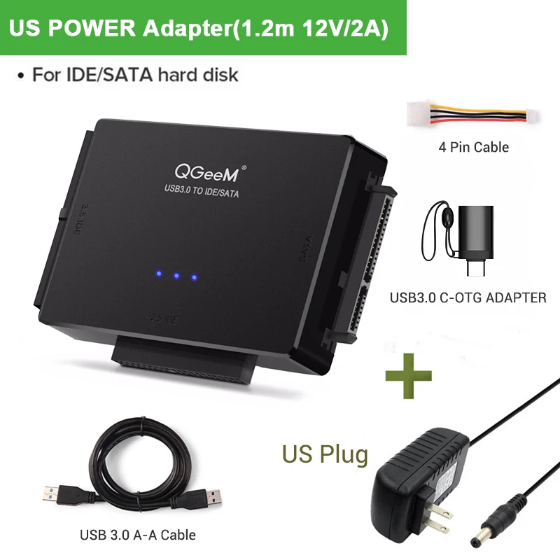 Переходник QGEEM SATAUSB 3,0 IDE, кабель USB 2,5 Sata для жестких дисков 3,5 SATA IDE, Переходник USB C OTG HDD SSD USB
