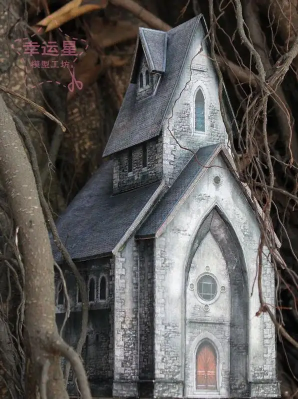 3D бумажная модель средневековых зданий 1: 87 Лесная часовня, игрушка ручной работы сделай сам