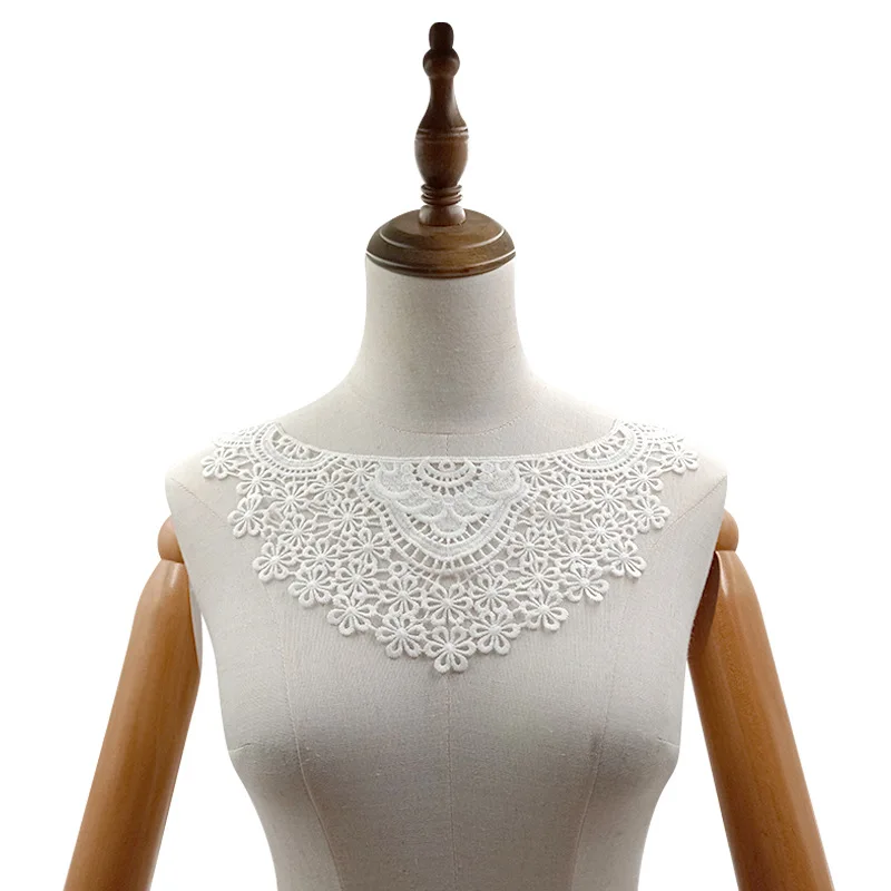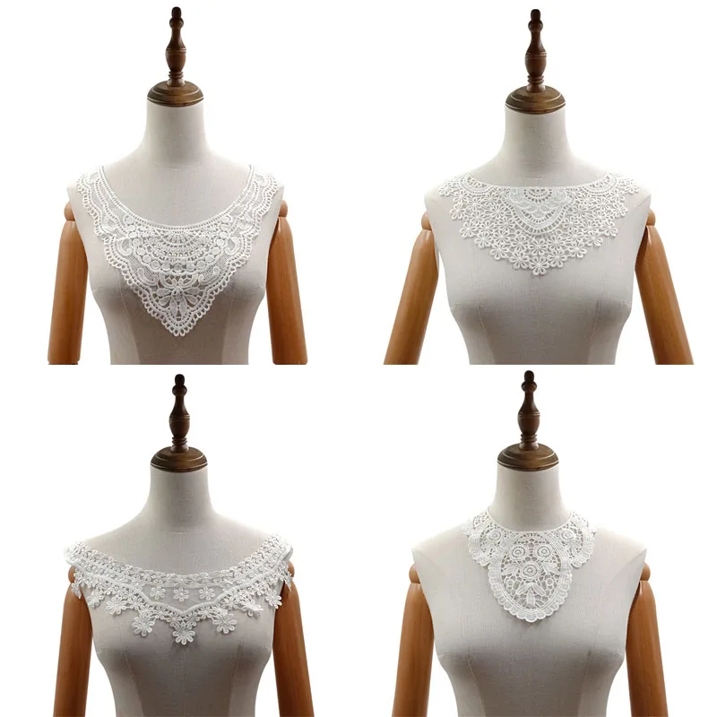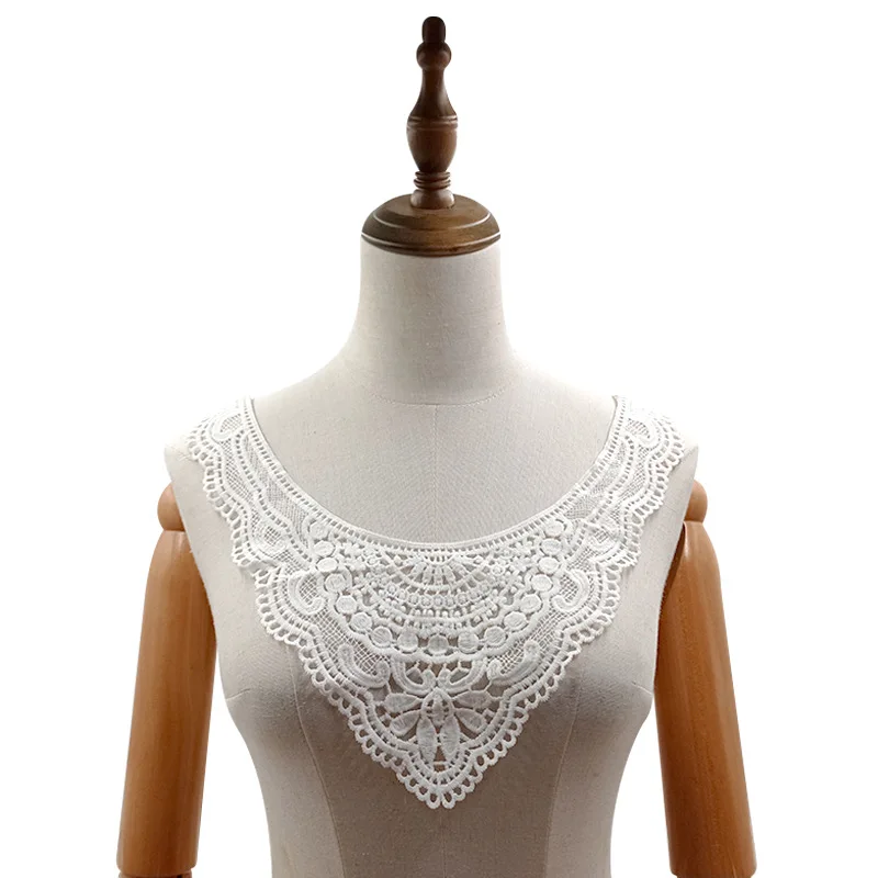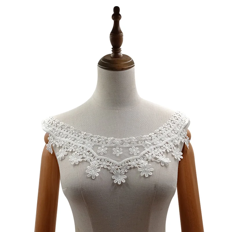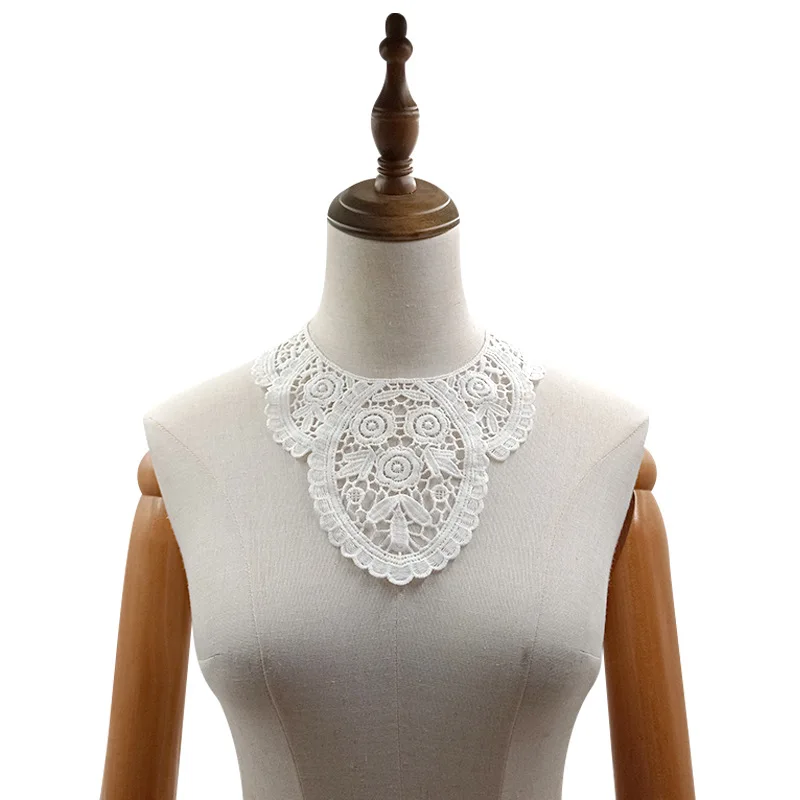 Популярная белая хлопчатобумажная вышивка кружевной воротник тканевый, швейная аппликация сделай сам, гипюровая лента, отделка декольте, свадебное платье, тканевые аксессуары