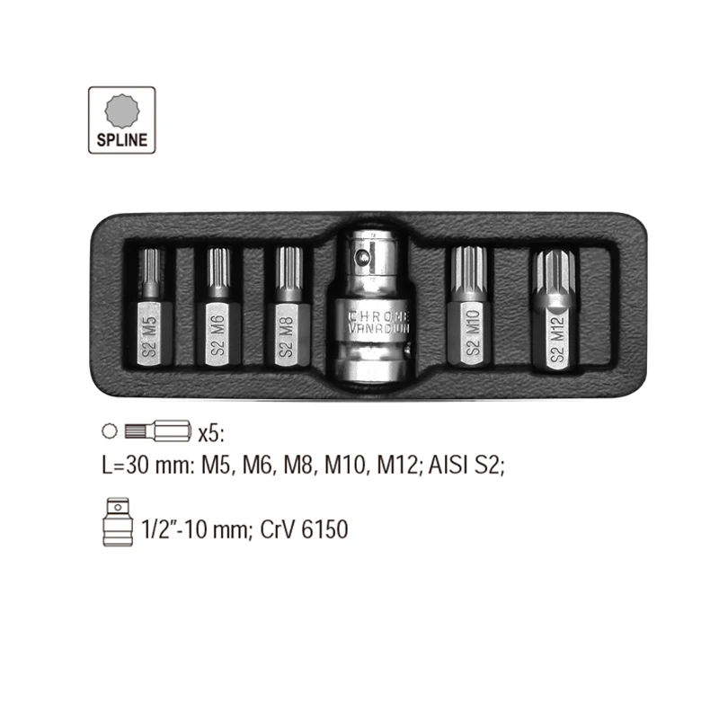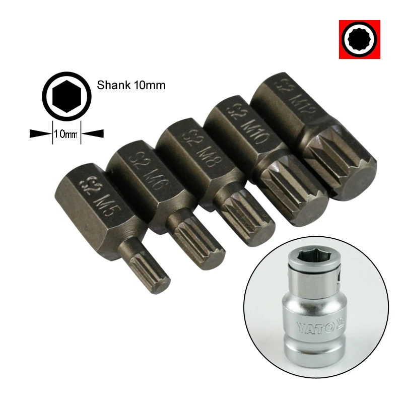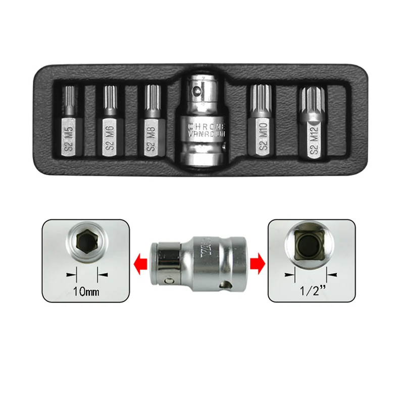 Биты для отвертки Torx 6 в 1, 12-точечные шлицевые, ударные биты с шестигранным хвостовиком 10 мм, M5, M6, M8, M10, M12 с переходником 12 дюйма