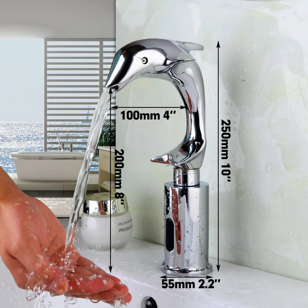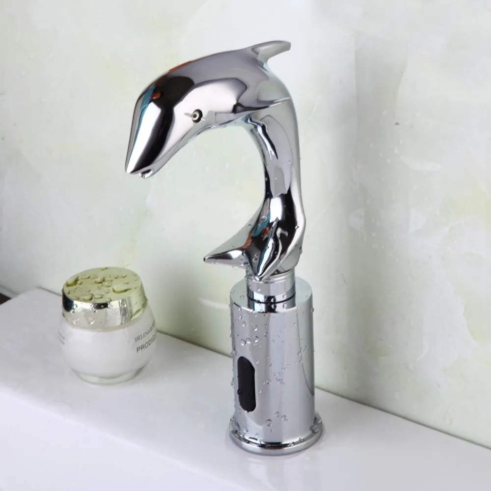 Monite, новый дизайн дельфина, роскошный автоматический кран для ванной комнаты, смеситель для раковины, хромированный полированный водопад, краны