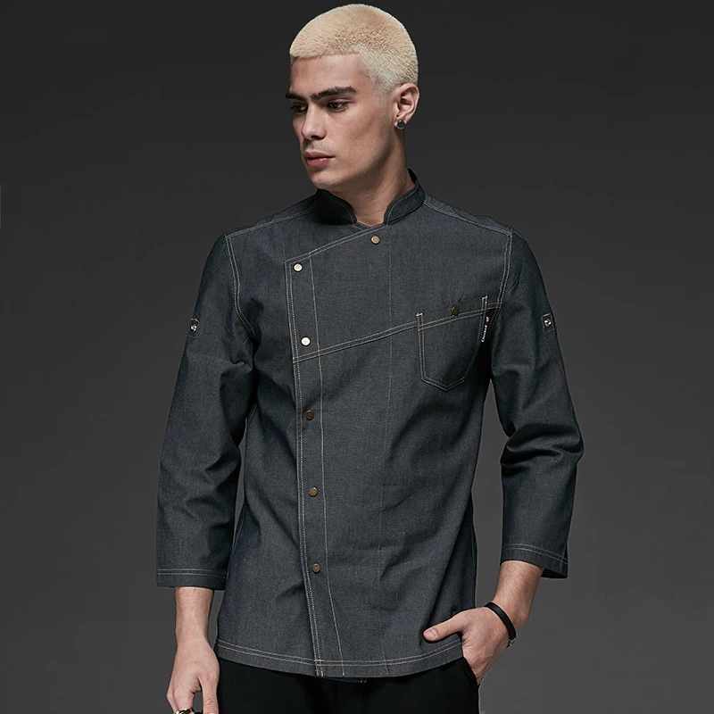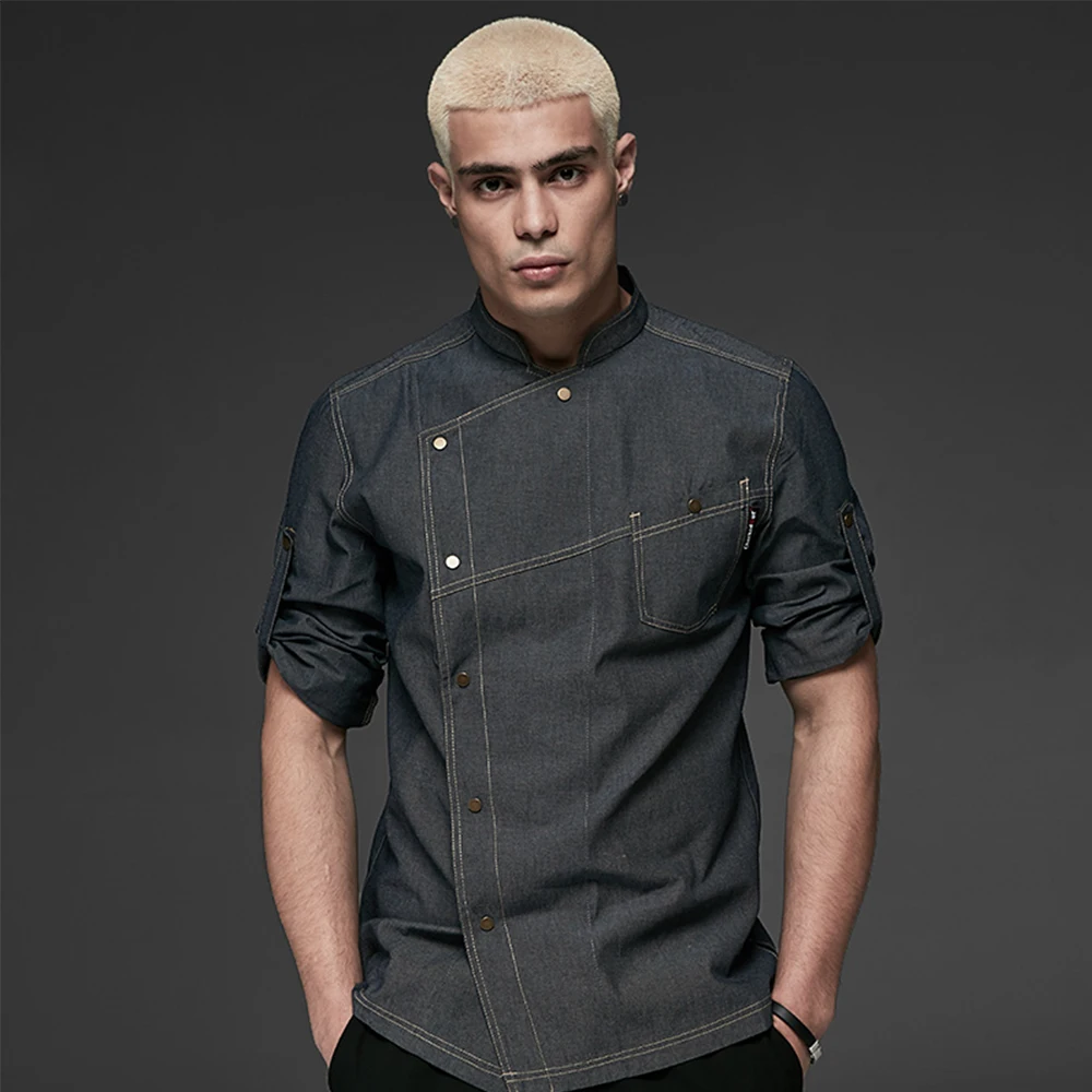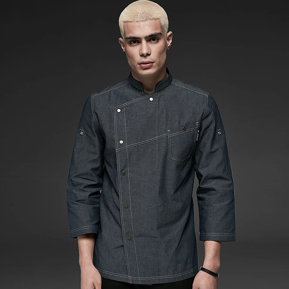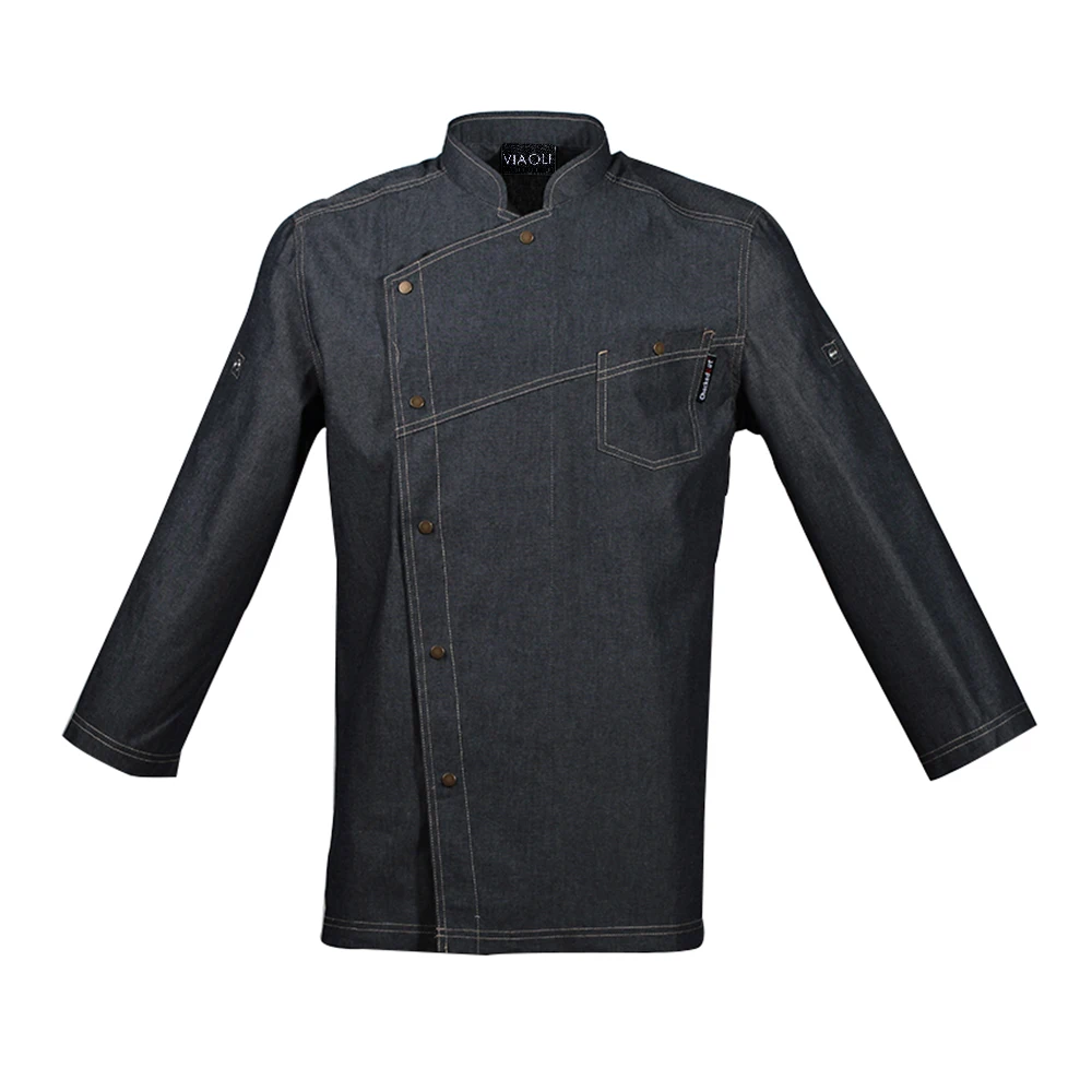 Куртка шеф-повара VIAOLI из джинсовой ткани, рубашки с длинными рукавами для ресторана, одежда шеф-повара, униформа для отеля, пальто шеф-повара
