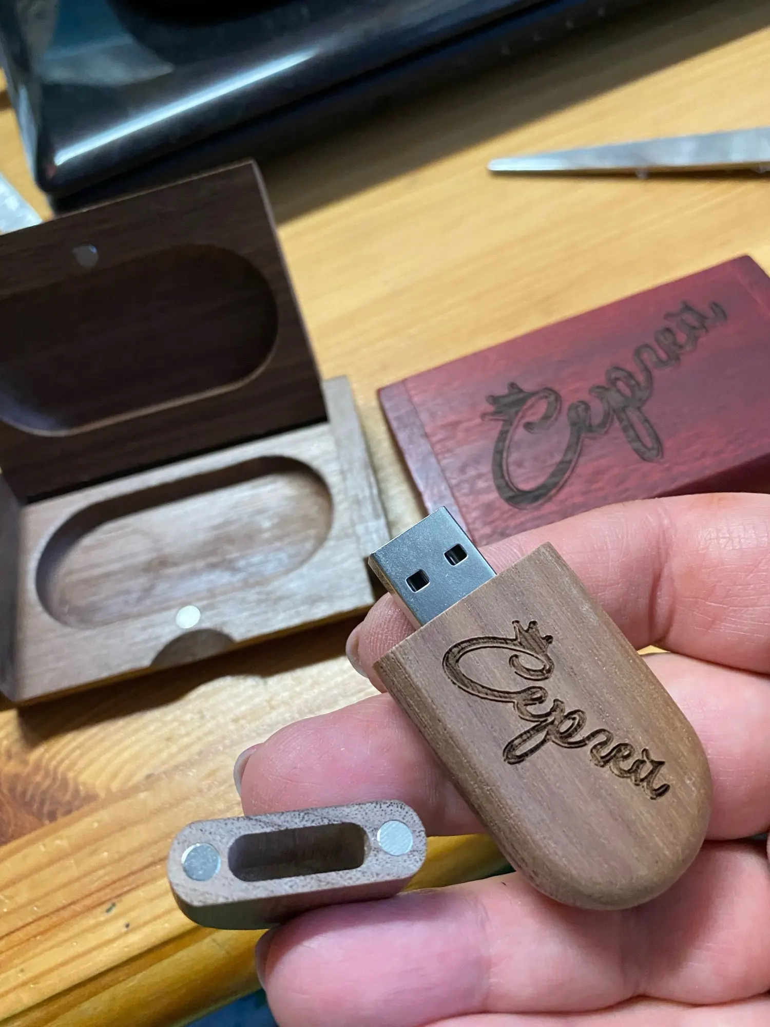 Красивая коробка с USB гравировкой внутри. Не пробовал 64 Гб в качестве свадебного подарка, чтобы держать их фотографии приходят Feb 2022. Отличная идея подарка. Нравится