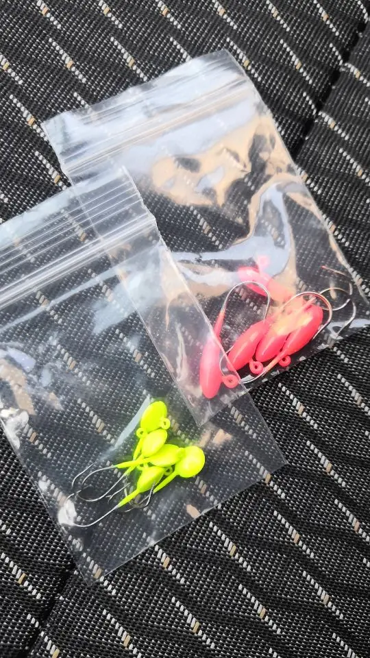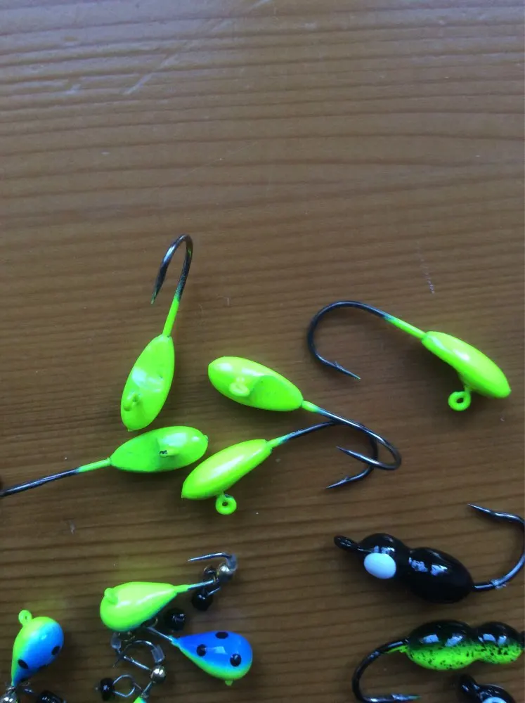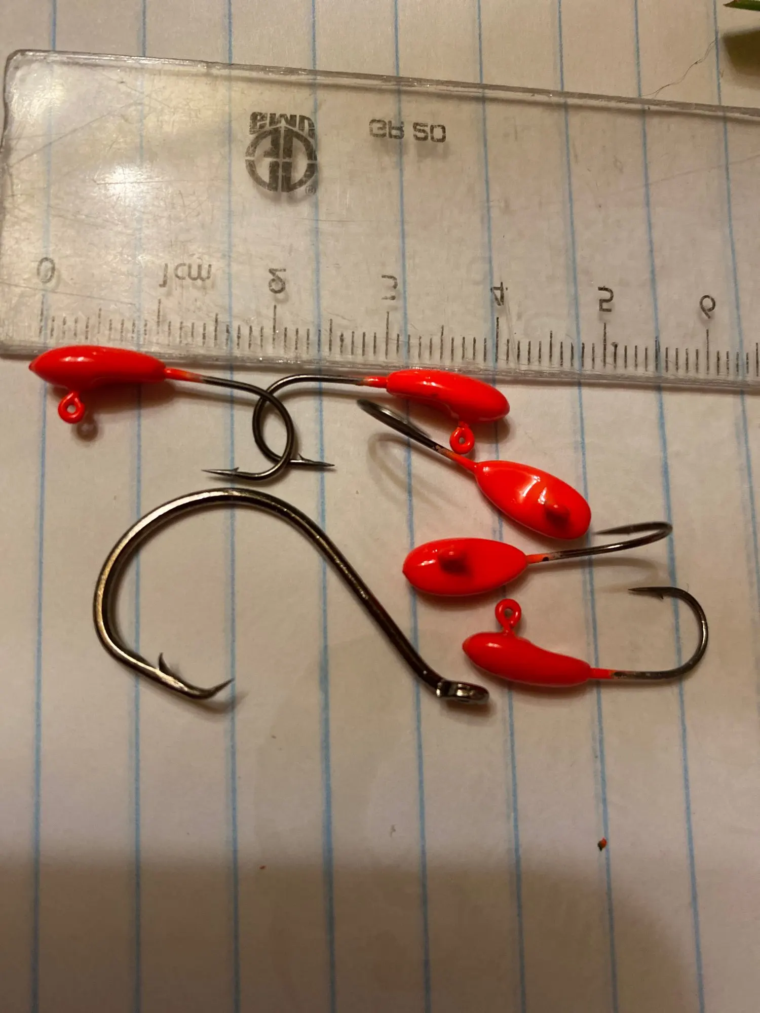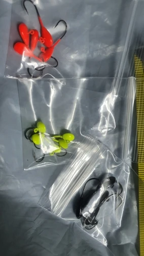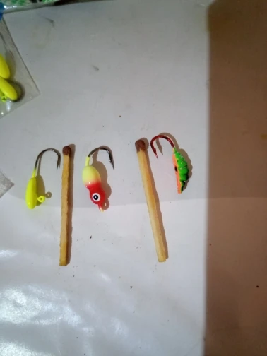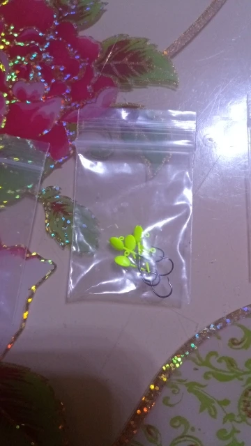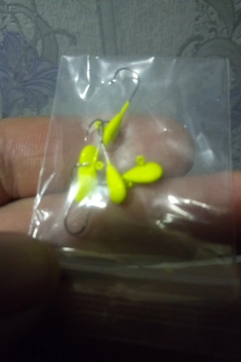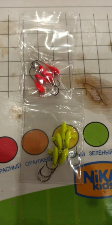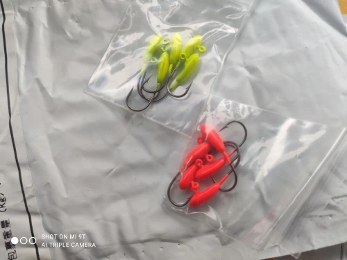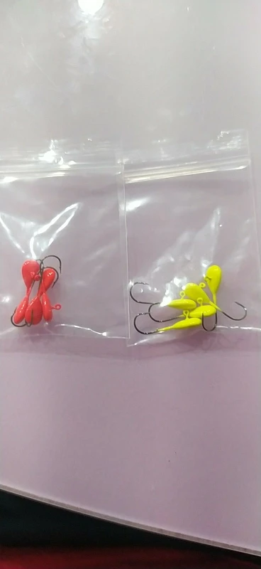 джиги соответствуют описанию, сделаны неплохо, ушки хоть и окрашены, но отвестия есть, ничего ковырять не надо, крючки тонкие, не разгибаются. минус один-крючки тупые, очень тупые, надо точить. будем пробовать.