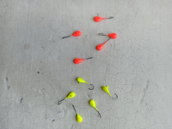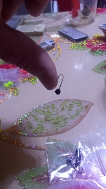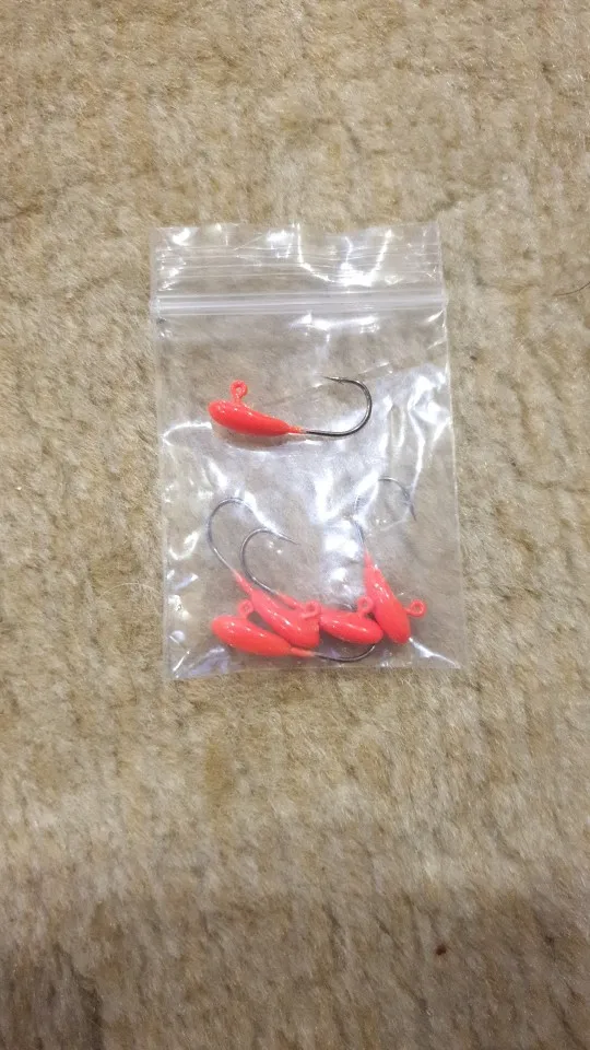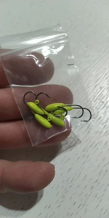 приехали в общей посылке. 5шт. крючки тонкие острые. ушко кажется мелковатым. может так и должно быть. с мормышками ранее дел не имел