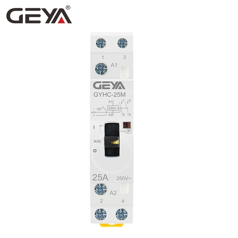 Модульный контактор GEYA, 2P, 16A, 20A, 25a, 2no или 2NC, 220 В, бытовой контактор с ручным управлением, тип Din-рейки