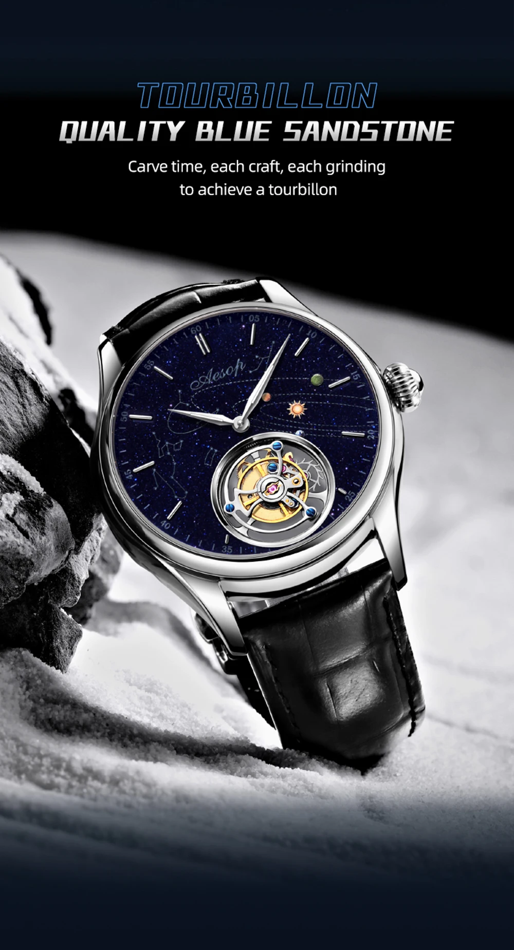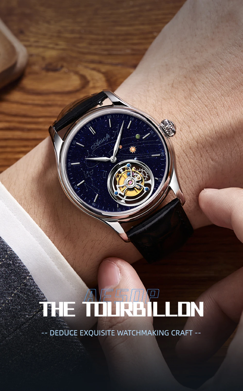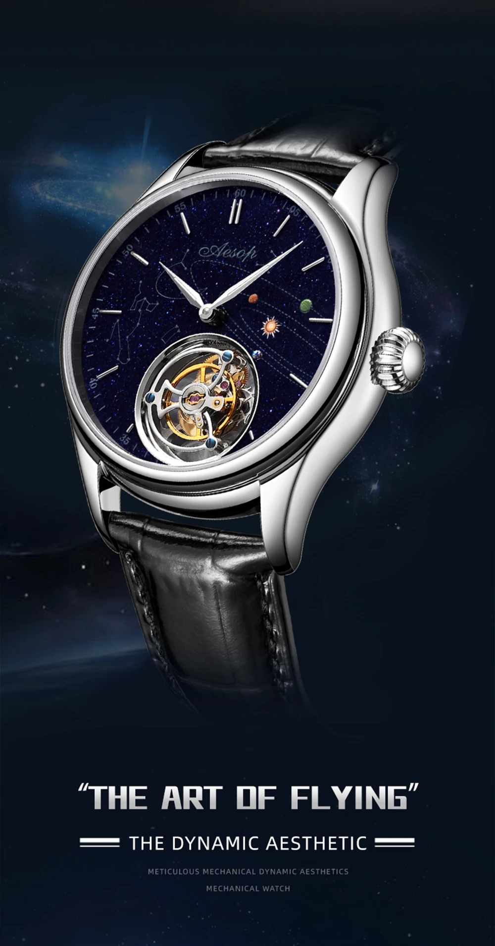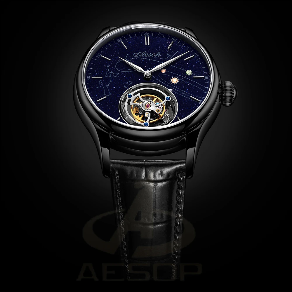 -Торговая марка: AESOP-Движение: AESOP Toubillon движение-Водонепроницаемость: 10 бар/100 м/10 АТМ-Материал корпуса: нержавеющая сталь 316L-Диаметр циферблата: 42,5 мм-Высота циферблата: 10 мм-Ширина ремешка: 22 мм-Частота: 28800 Гц/ч-Хранение энергии: 40 часов-Ошибка во времени в пути: ± 10 секунд/день-Гарантия: 3 года-Ремешок: первый слой из воловьей кожи-Длина ремешка: 24 см