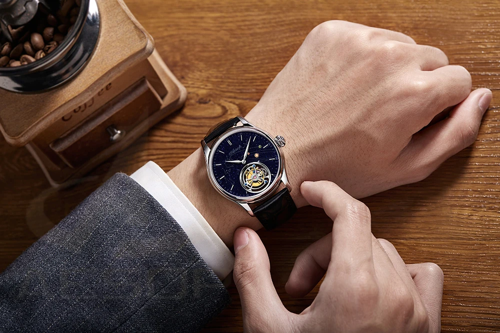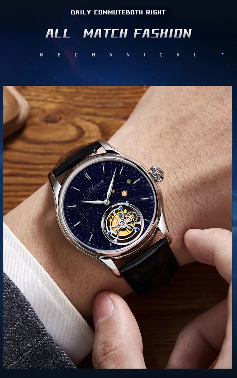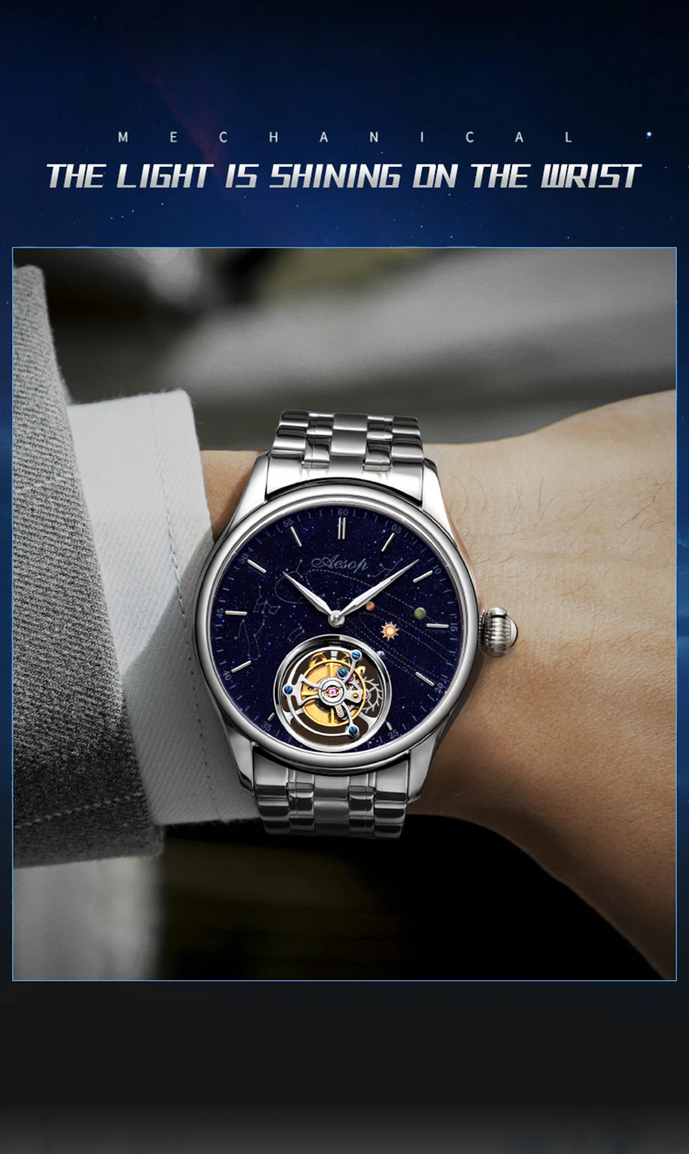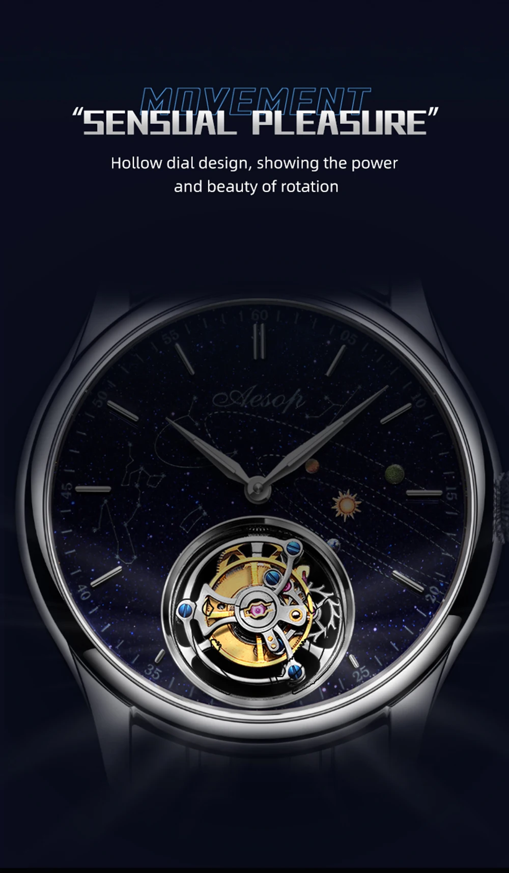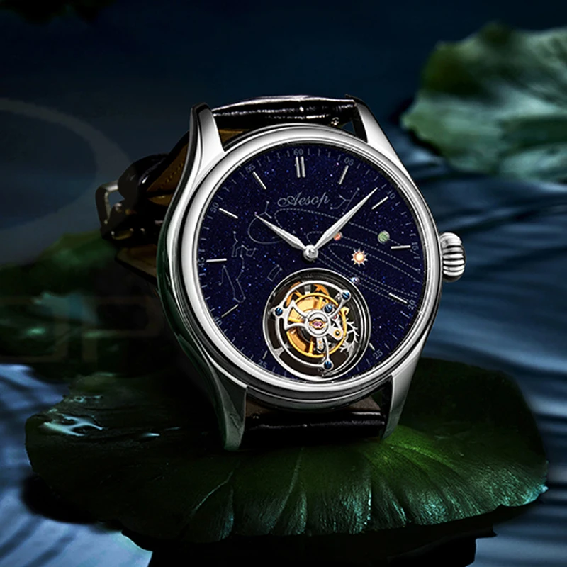 -Торговая марка: AESOP-Движение: AESOP Toubillon движение-Водонепроницаемость: 10 бар/100 м/10 АТМ-Материал корпуса: нержавеющая сталь 316L-Диаметр циферблата: 42,5 мм-Высота циферблата: 10 мм-Ширина ремешка: 22 мм-Частота: 28800 Гц/ч-Хранение энергии: 40 часов-Ошибка во времени в пути: ± 10 секунд/день-Гарантия: 3 года-Ремешок: первый слой из воловьей кожи-Длина ремешка: 24 см