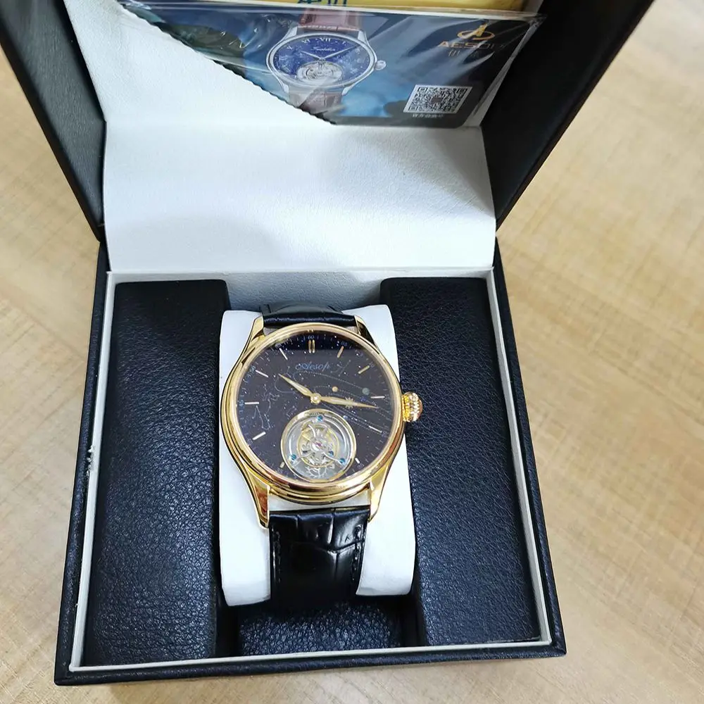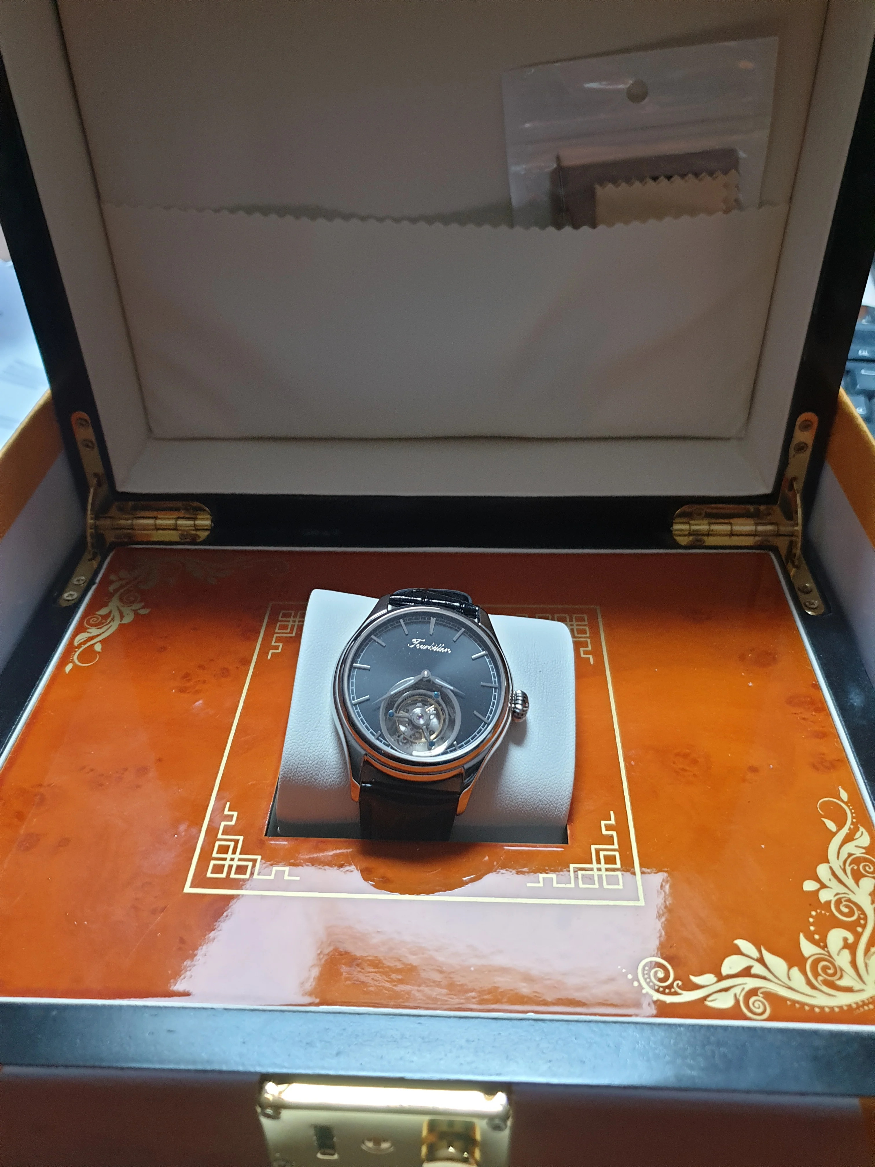 Потрясающие часы, красивый турбийон (Это коаксиальный турбийон), со скелетонизированным дисплеем, действительно впечатляющие. Я очень доволен этим, и теперь я хочу проверить его точность. Очень быстрая доставка и хорошая упаковка, хороший продукт и продавец. Хорошо сделано!
