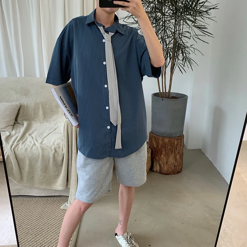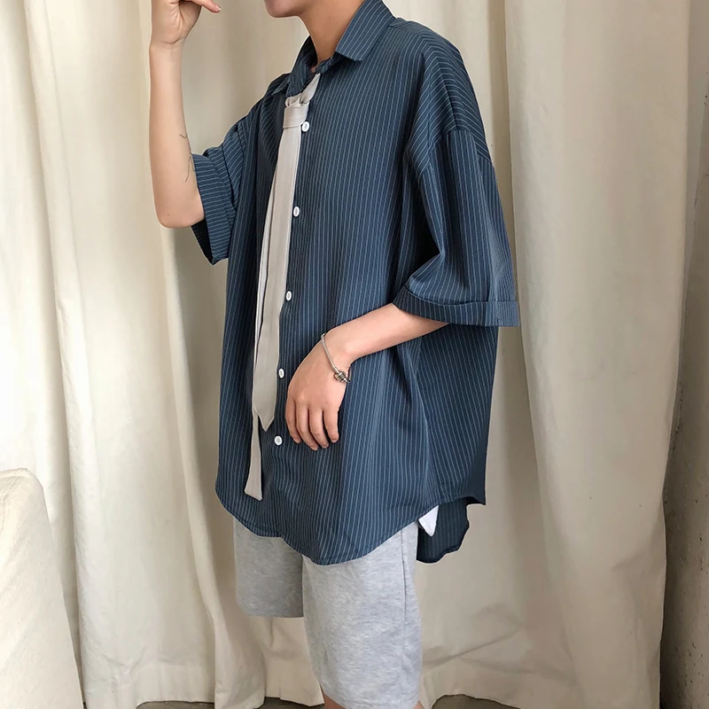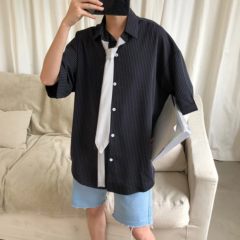 Мужская свободная рубашка с коротким рукавом, чернаязеленаятемно-синяя рубашка с принтом, большие размеры, лето 2020